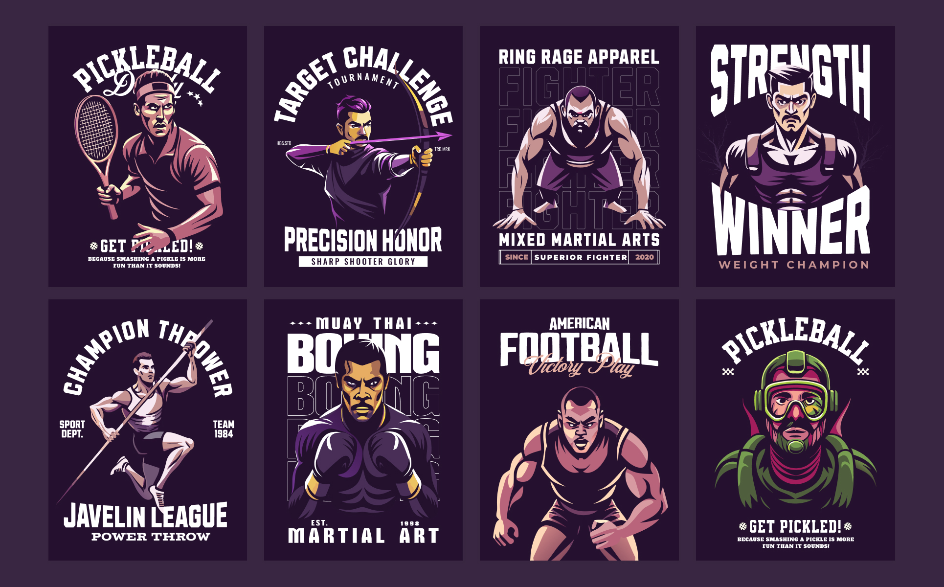 Unleash the energy of sports with this dynamic Sports Character Illustration Set! Featuring a variety of athletic cartoon characters, this collection is perfect for websites, branding, apps, and other creative projects. Add a punch of sporty excitement to your designs with this vibrant, flat vector pack!