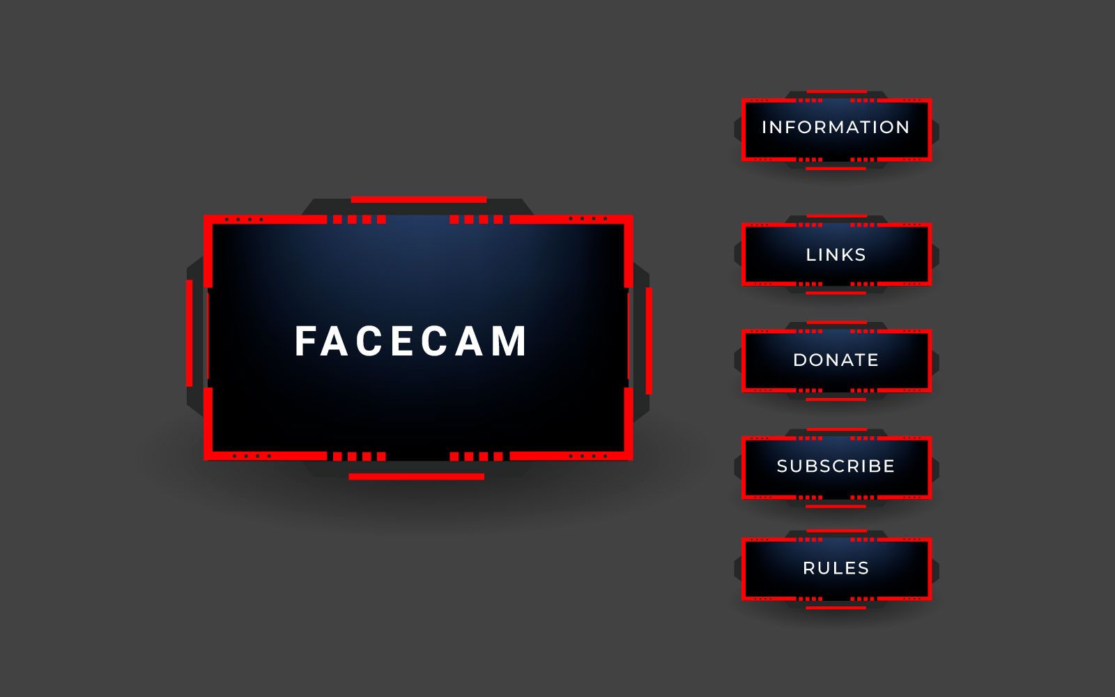 Twitch stream overlay package including facecam overlay, offline, starting soon, twitch panels .This template best for any personal or corporate use.Ready to use for Multipurpose uses,All main elements are editable and customizable.