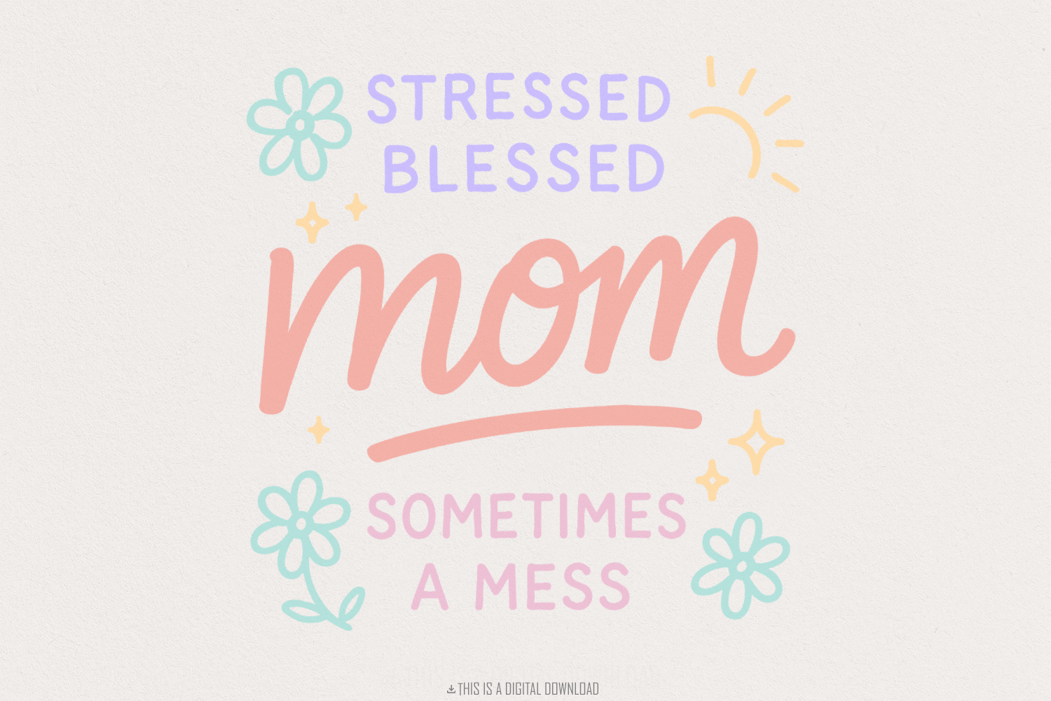 Stressed Blessed Mom Sometimes a Mess PNG, Cute Mom Shirt PNG, Pastel Flowers Digital Download, Mother's Day Gift, Funny Mom Shirt Print