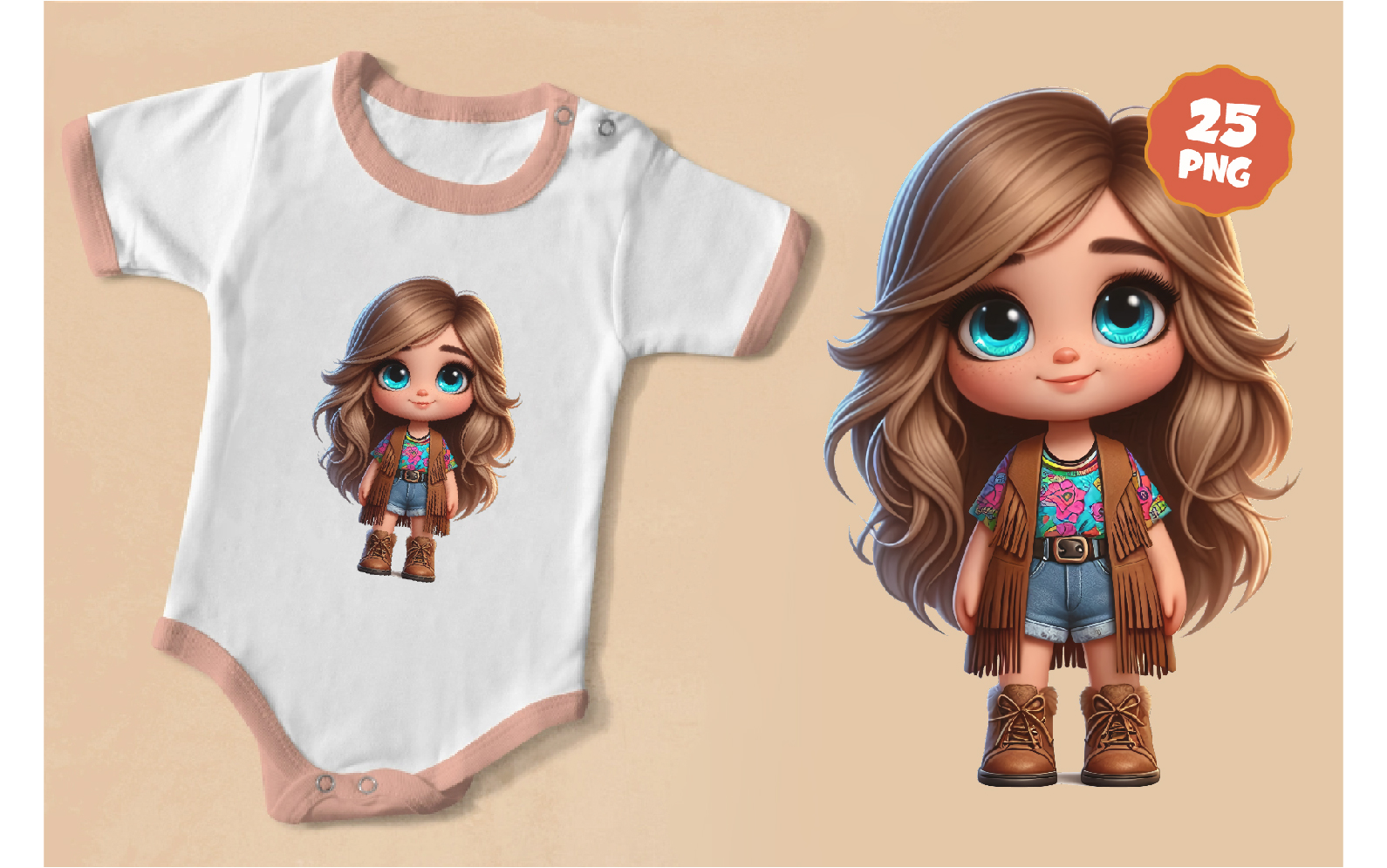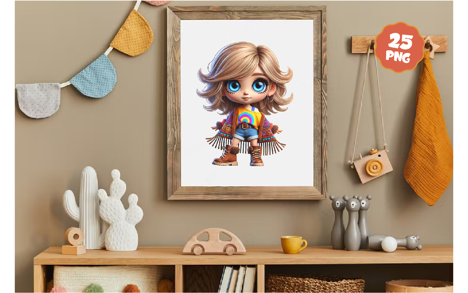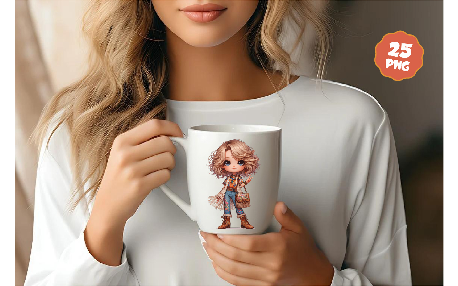 Stylish Hippie Girl Clip Art Set of 25 PNG files, cute fancy boho girl clip art, cute hippie girl clip art.