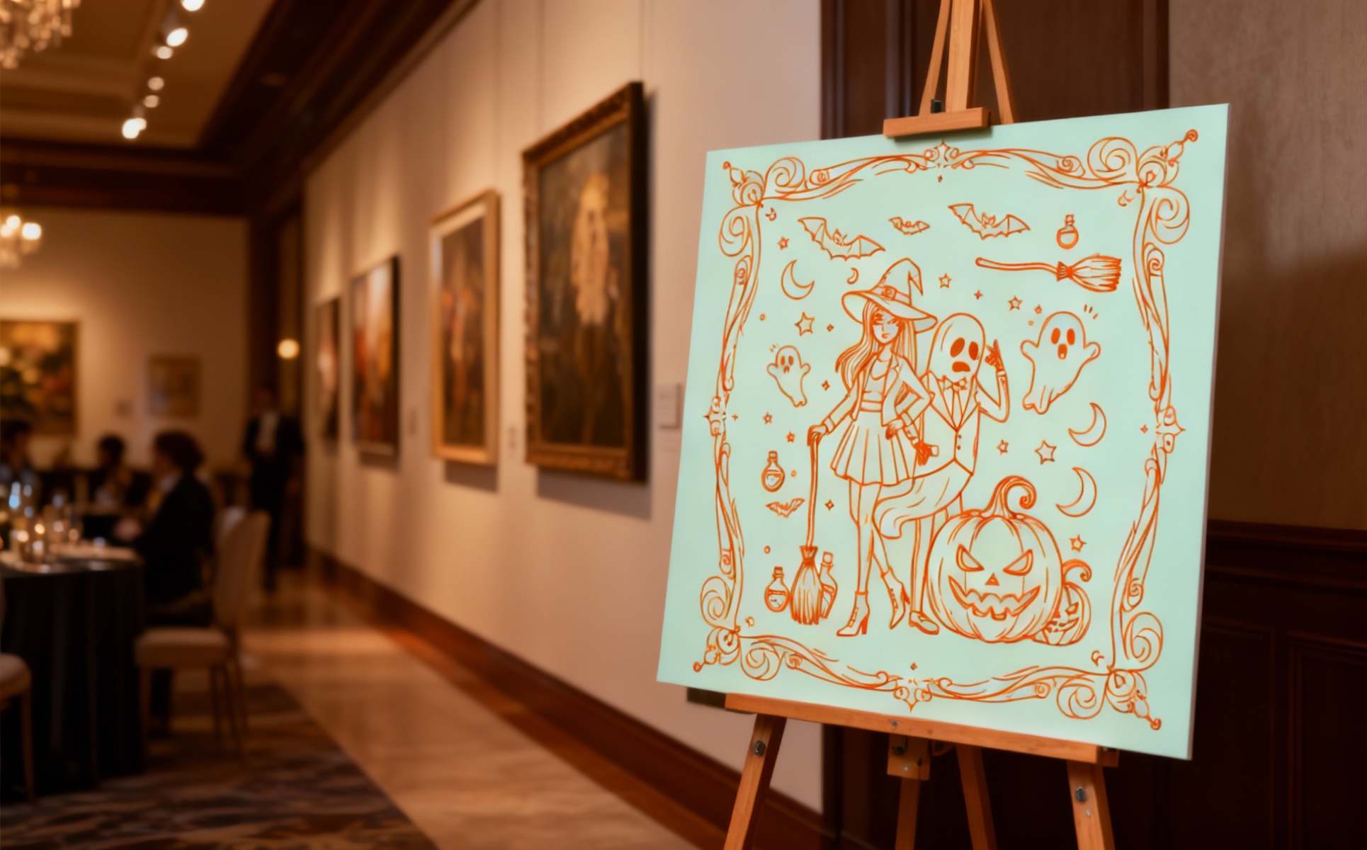 Stylish Witches Halloween Fashion Artwork for Apparel Posters and Party Branding Illustration