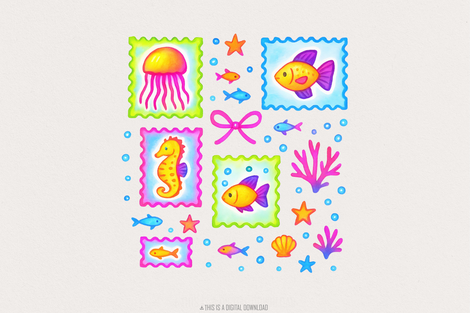 Summer Png, Beach Png, Coastal Aesthetic, Summer Vibes Png, Vintage Summer Png, Ocean Animals Png, Illustration