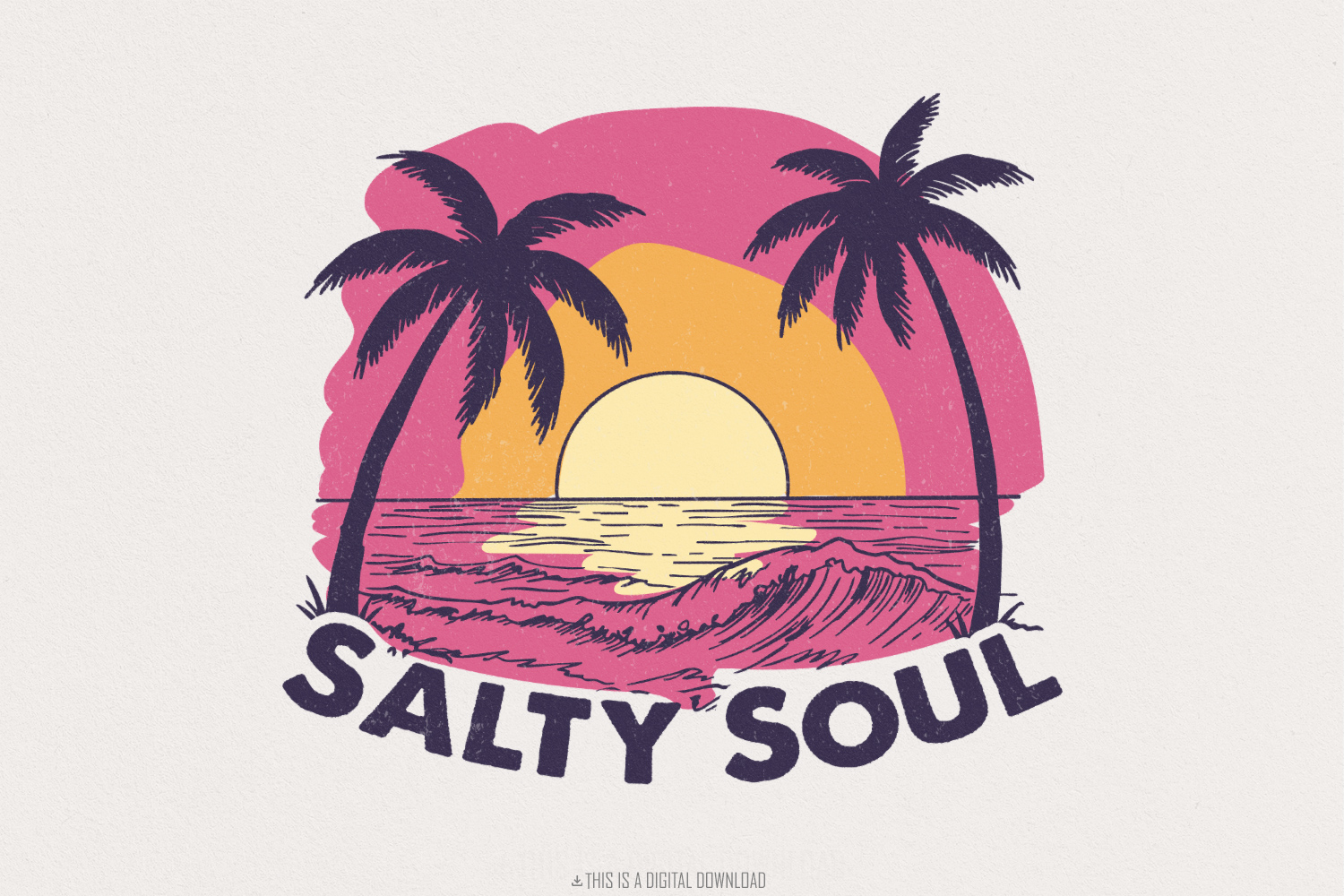 Summer Shirt Designs, Retro Summer PNG, Salty Soul PNG, Hello Summer PNG, Digital Download, Beach Illustration