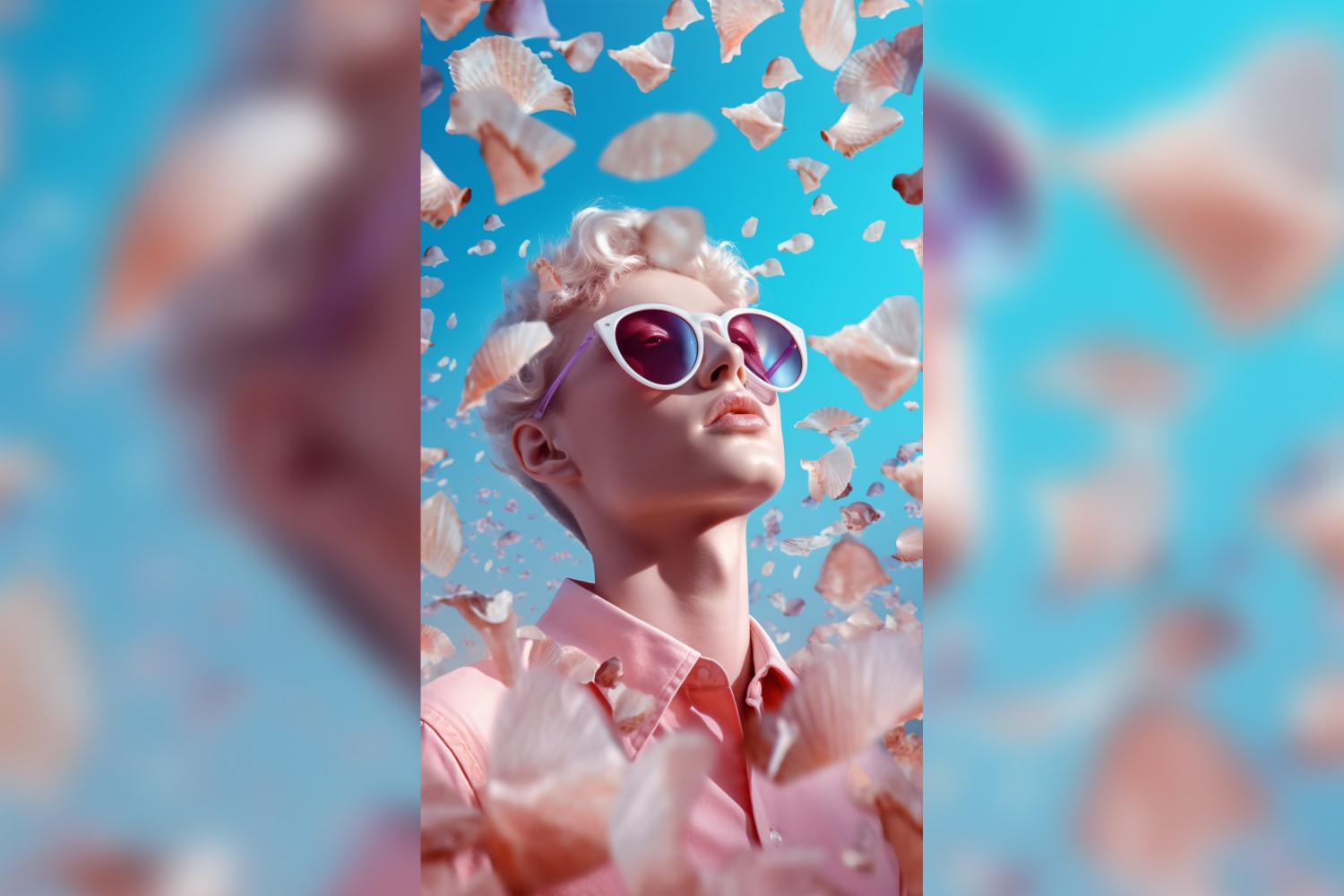 Sunny day Boy with sunglasses seashells falling background 309 Illustration
