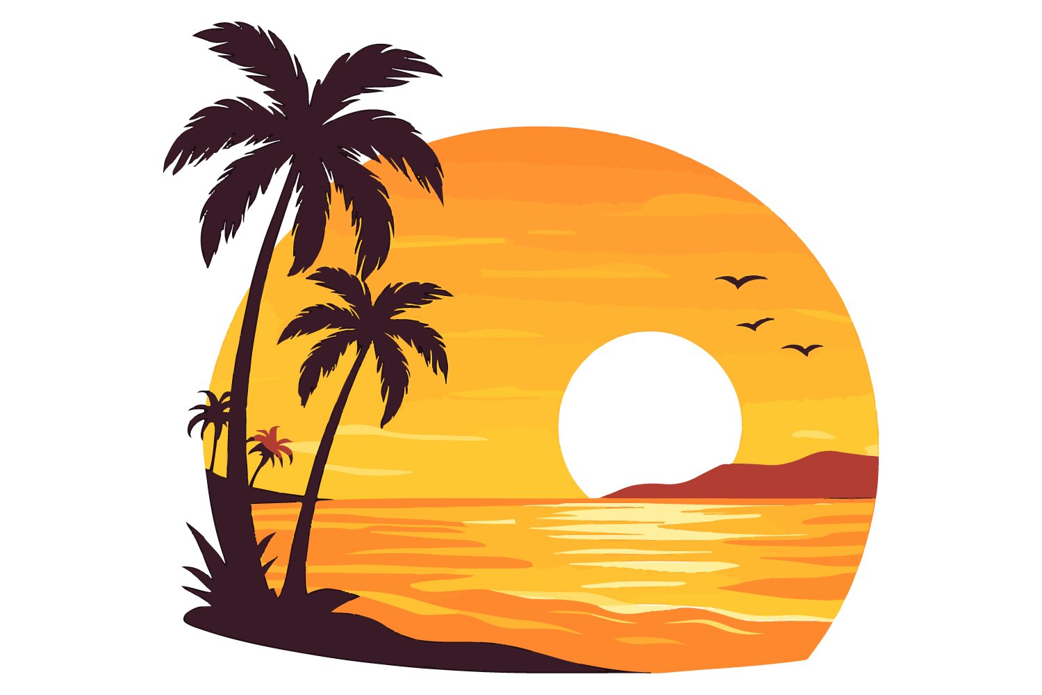 This is a clean eye-catchy Sunset Beach Vector Illustration suitable for all businesses.