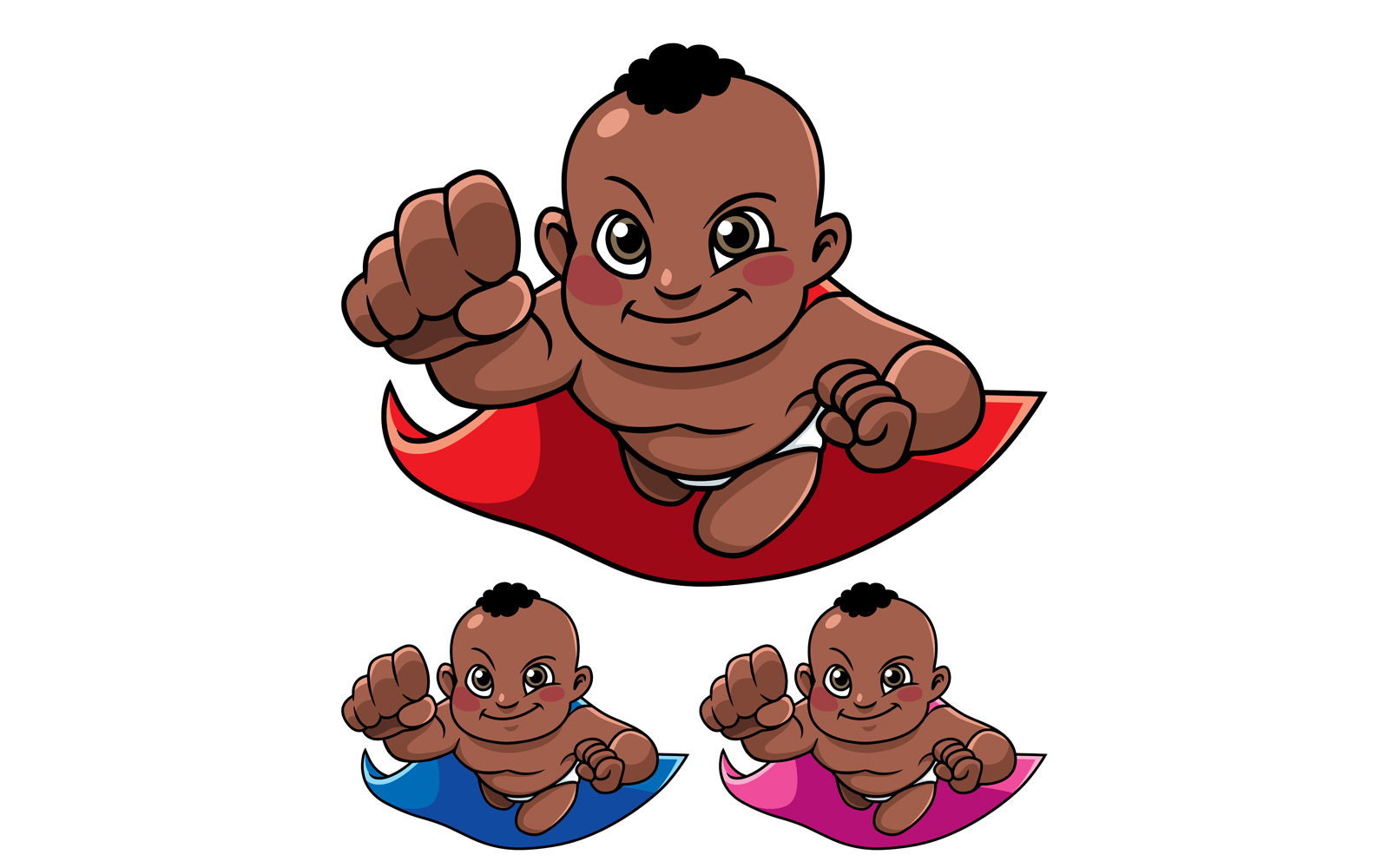 Full length illustration of super baby smiling while flying.