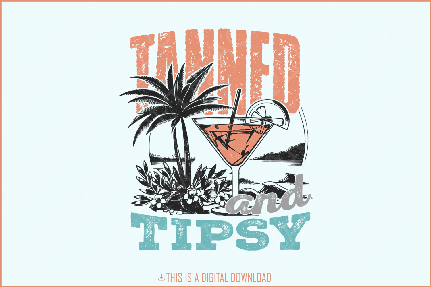 Tanned and Tipsy PNG, Summer PNG, Retro Summer png, Trendy Summer PNG, Beach png, Sublimation Illustration