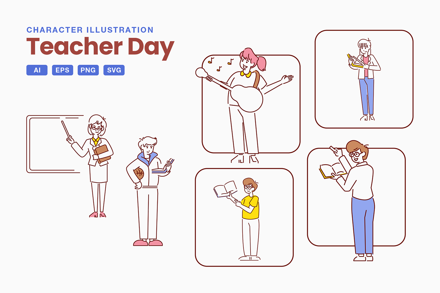 Teacher Day Character Illustrations are perfect for website design, mobile apps, presentations, analytical reports, infographics, or website templates. It’s available in multiple file formats, easy to edit, and can be flexibly integrated into your design.
