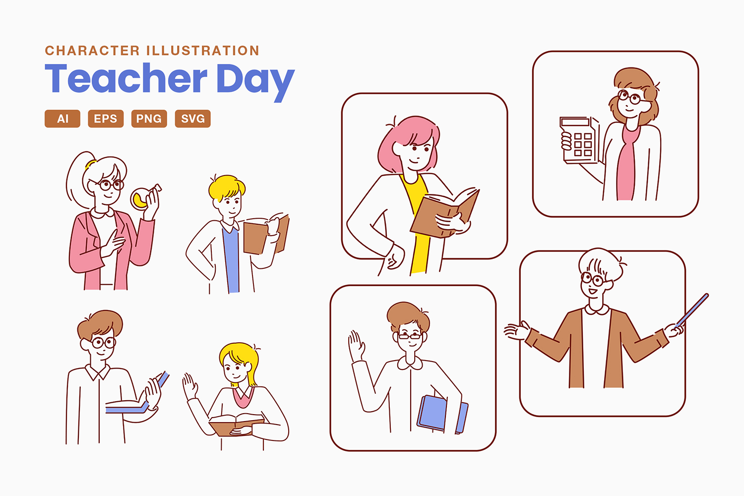 Teacher Character Illustrations are perfect for website design, mobile apps, presentations, analytical reports, infographics, or website templates. It’s available in multiple file formats, easy to edit, and can be flexibly integrated into your design.