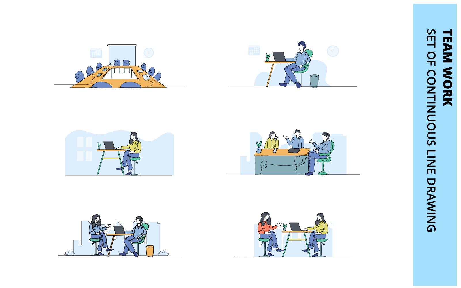 9 Team Work elementary line art. Perfect modern decorative design about office. Creative single art illustration as a complement to your best design. You can use this file for a variety of purposes such as designing t-shirts, banners, greeting cards, stickers, prints, tumblers, cups, and much more. Get this limited bundle.