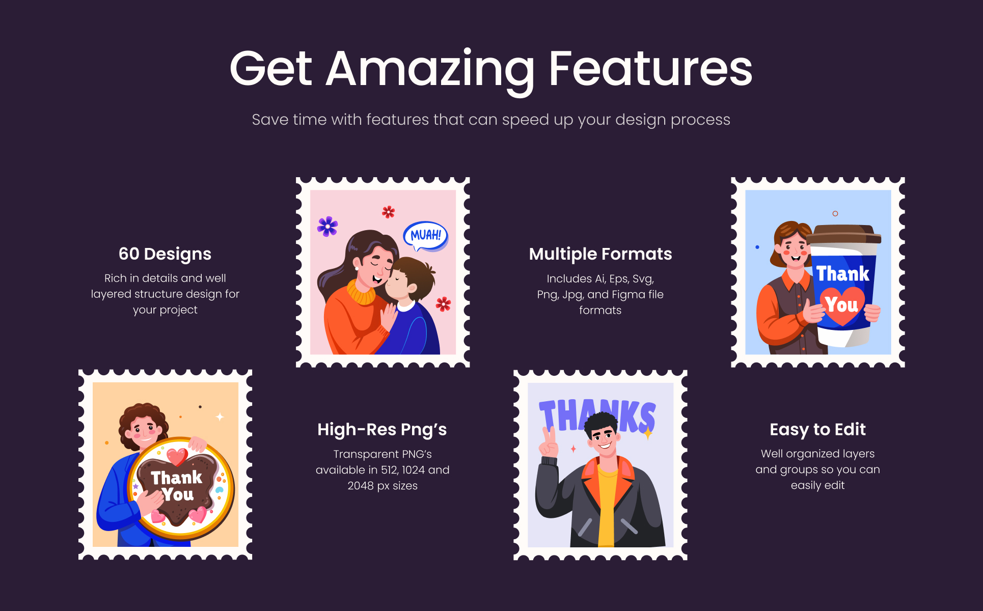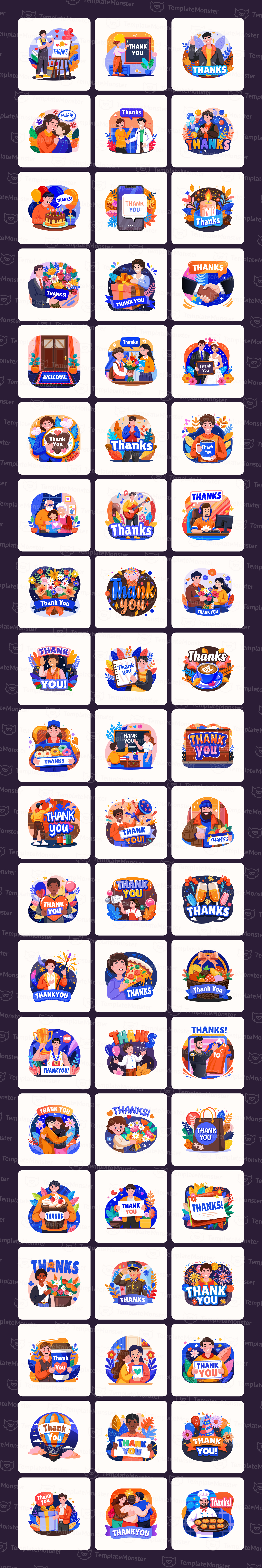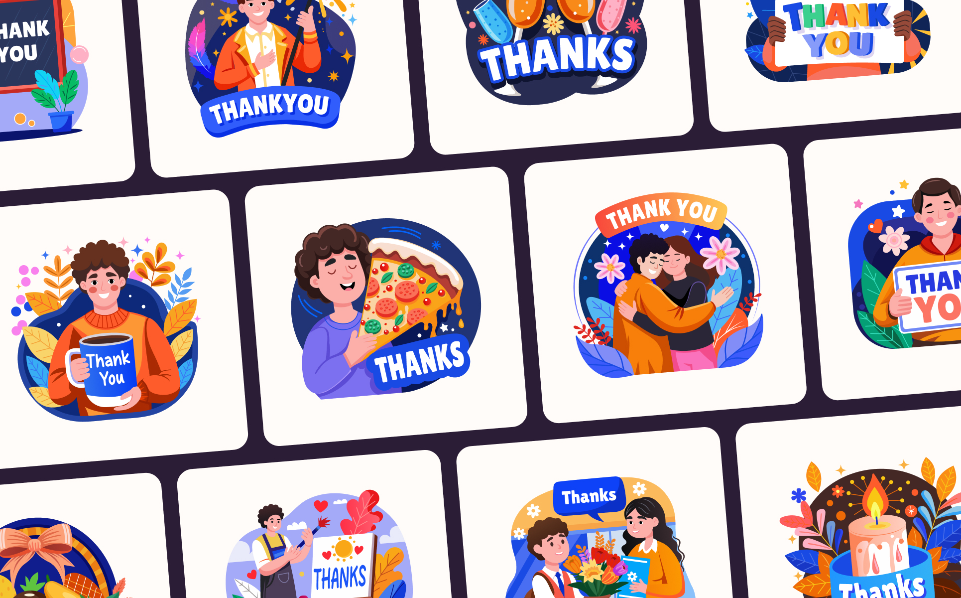 Bring warmth and appreciation to your projects with our Thank You Illustration Set! Designed in a modern flat style, this pack includes versatile illustrations perfect for thank you cards, social media posts, posters, and creative branding. You can easily customize and use them across all your design needs. Whether you're a designer or a small business owner, this set makes saying “Thanks” look amazing.