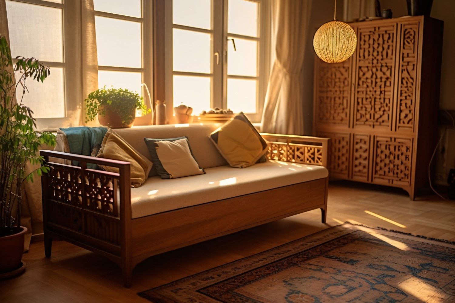 Furniture in the Italian living room is a testament to exquisite craftsmanship and timeless elegance. Plush, sumptuous sofas and armchairs invite you to sit and savour the moment, while ornate wooden coffee tables and sideboards adorned with intricate carvings become the focal points of the room. Upholstery often features rich fabrics like velvet, and the colour palette is a harmonious fusion of warm earthy tones and inviting neutrals.