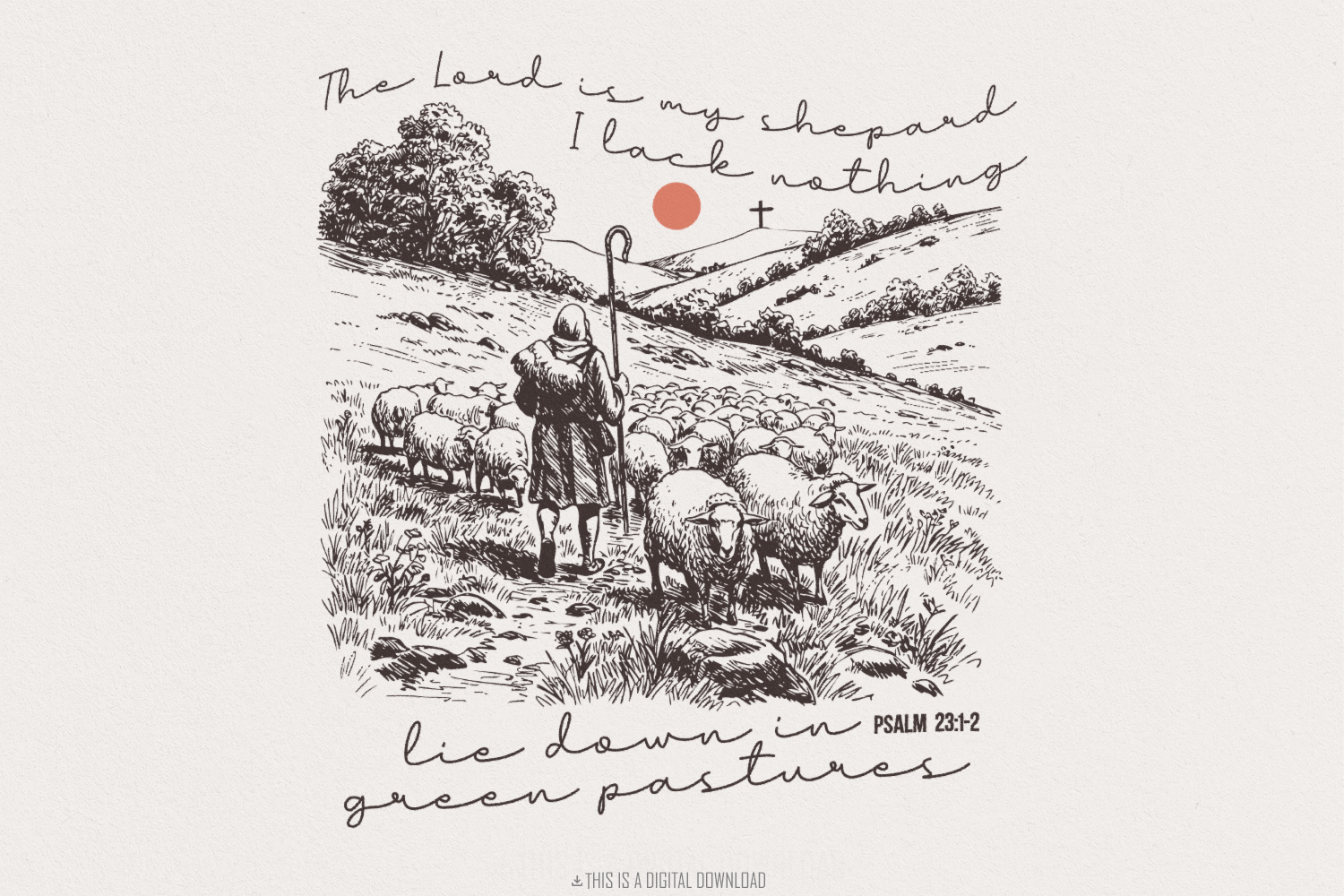 The Lord Is My Shepherd PNG, Easter Christian PNG, Retro Easter PNG, Easter Bible Verse, Groovy Illustration