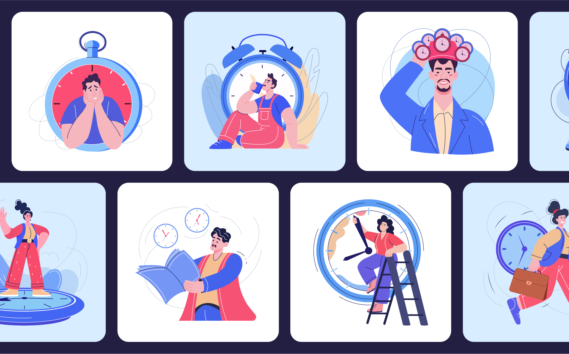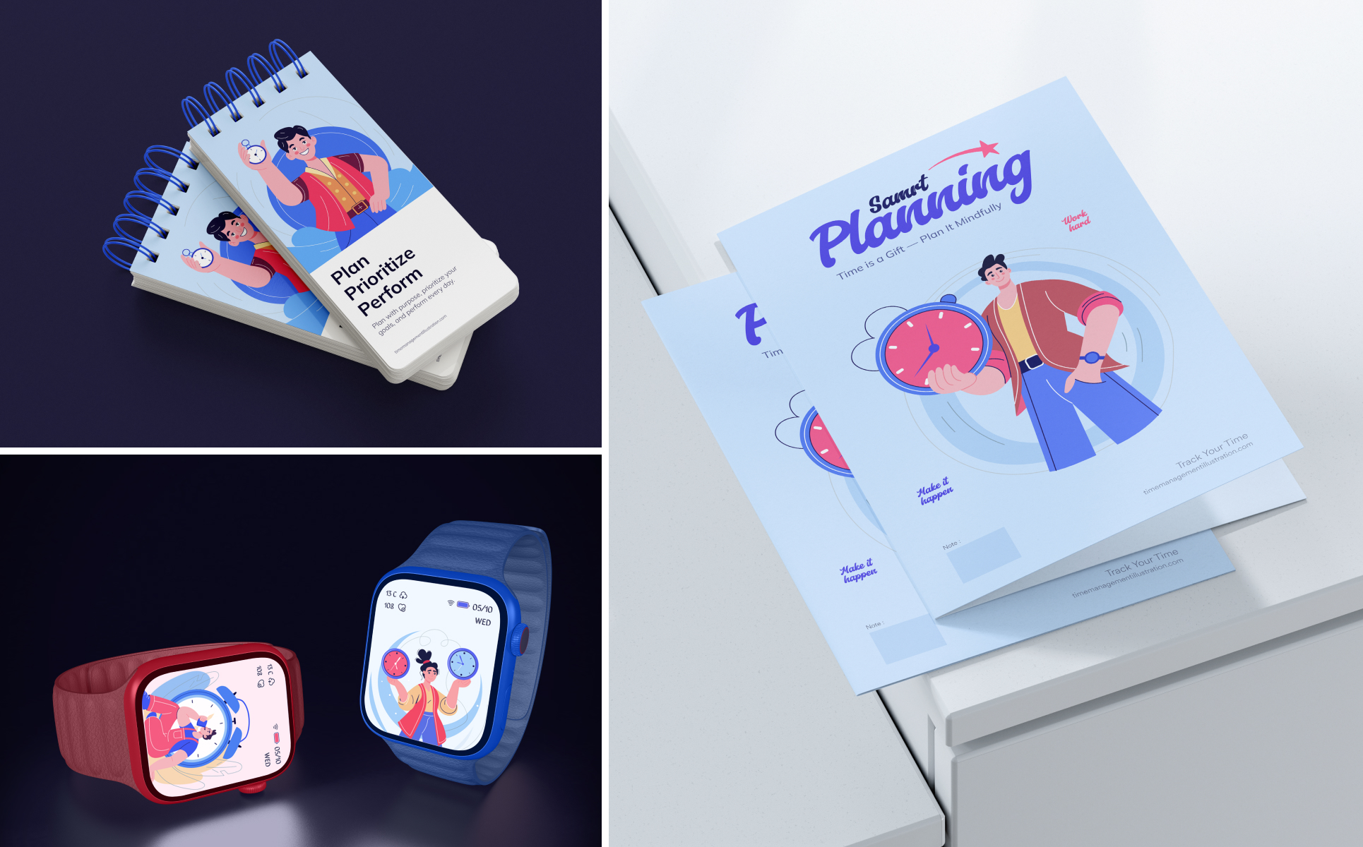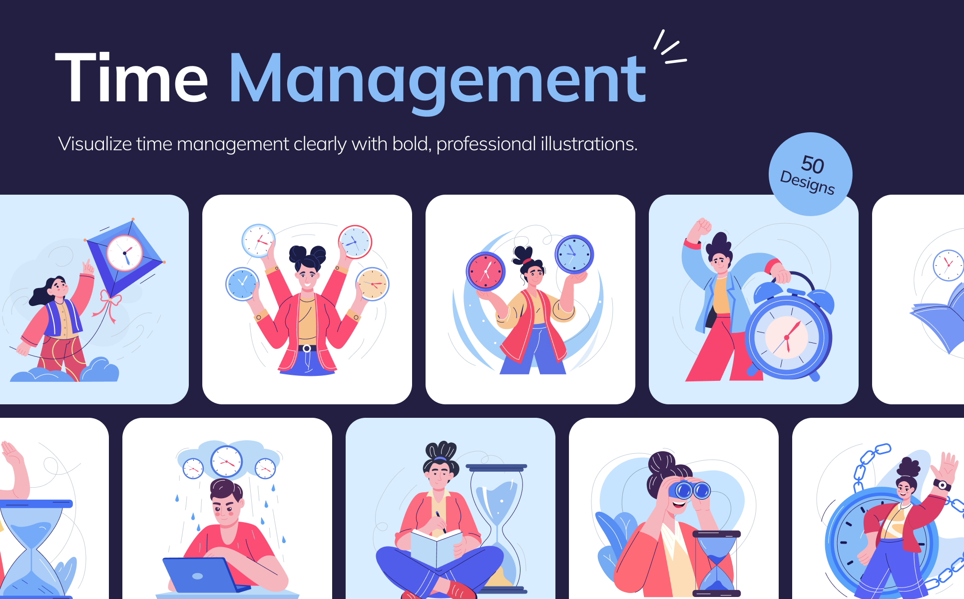 Stay ahead of deadlines with this Time Management Illustration Art Set! Designed in a charming flat style, this collection captures everything from productivity hacks and scheduling symbols to personal balance and time-saving tools. Perfect for planners, apps, presentations, blogs, and more. Whether you're a designer, educator, or coach, this set is your visual shortcut to better time habits!