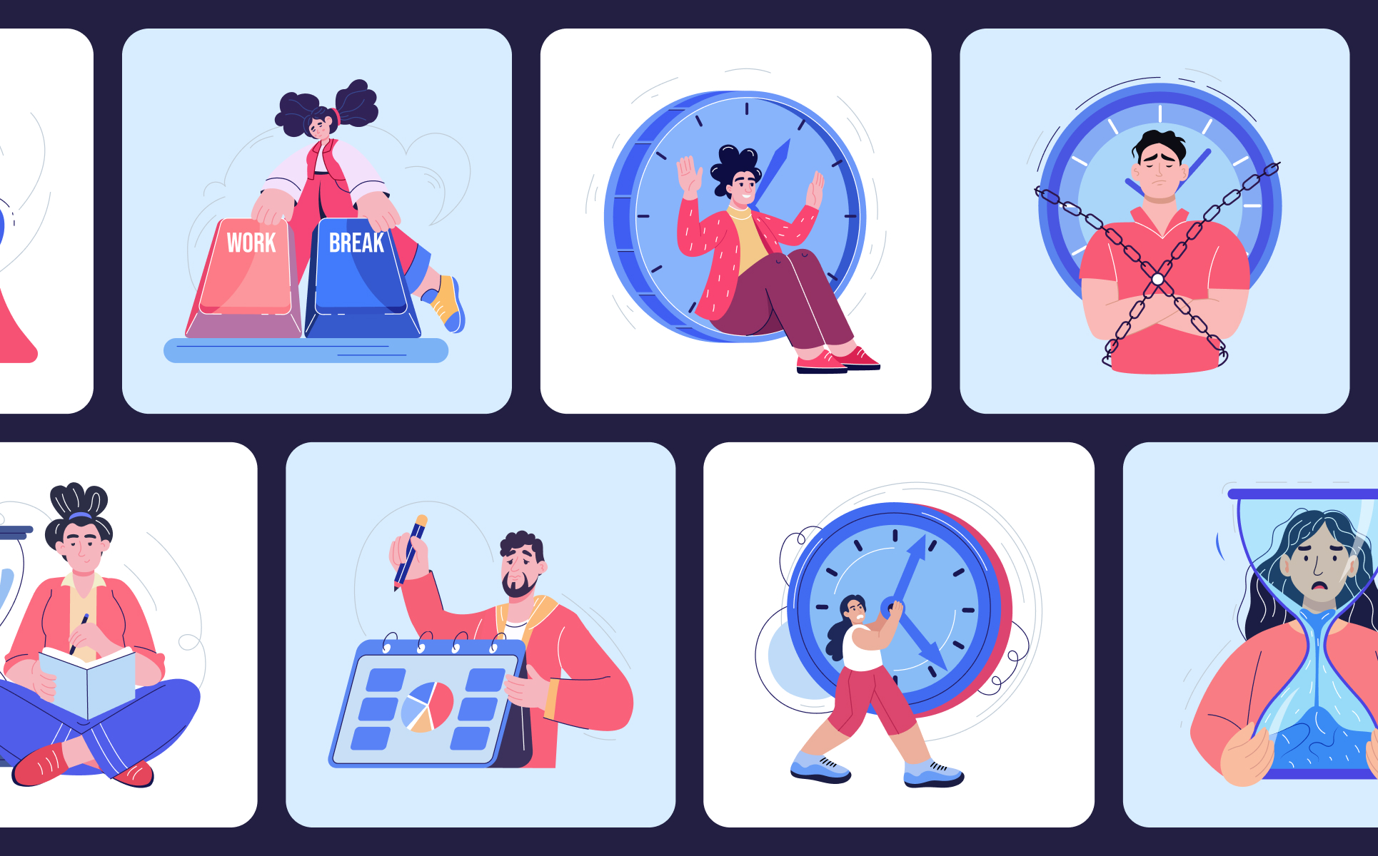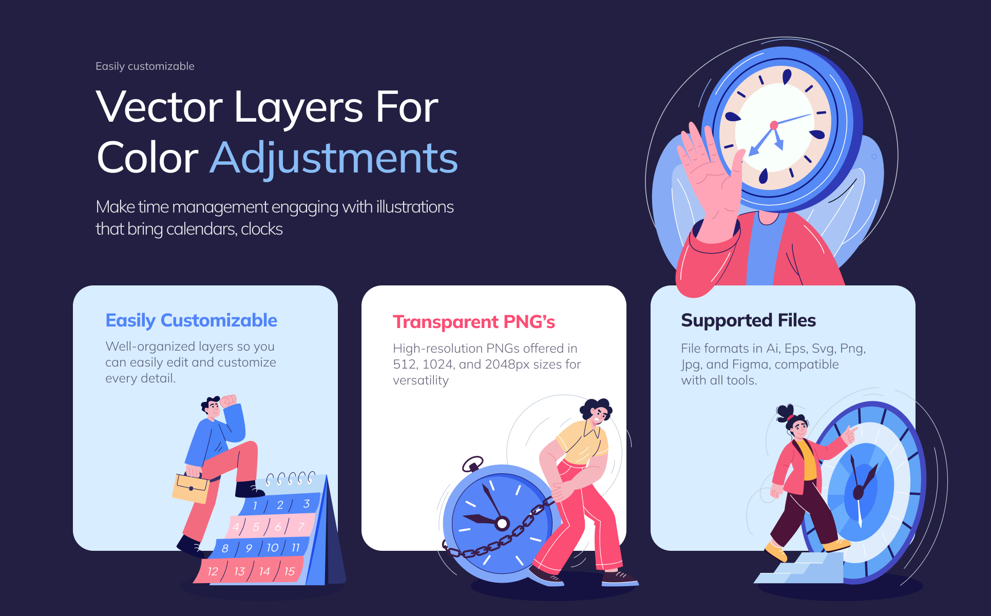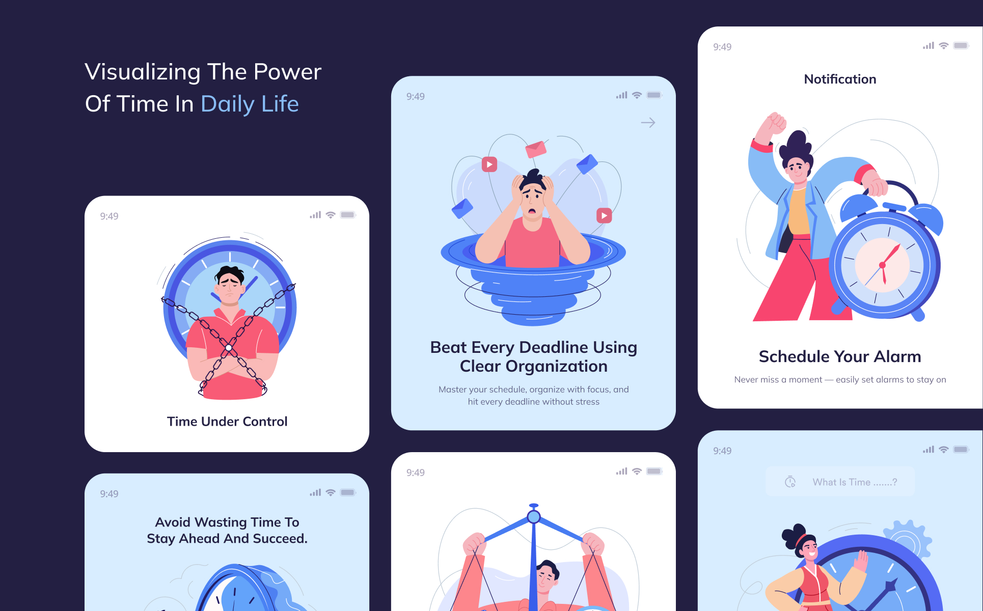 Stay ahead of deadlines with this Time Management Illustration Art Set! Designed in a charming flat style, this collection captures everything from productivity hacks and scheduling symbols to personal balance and time-saving tools. Perfect for planners, apps, presentations, blogs, and more. Whether you're a designer, educator, or coach, this set is your visual shortcut to better time habits!