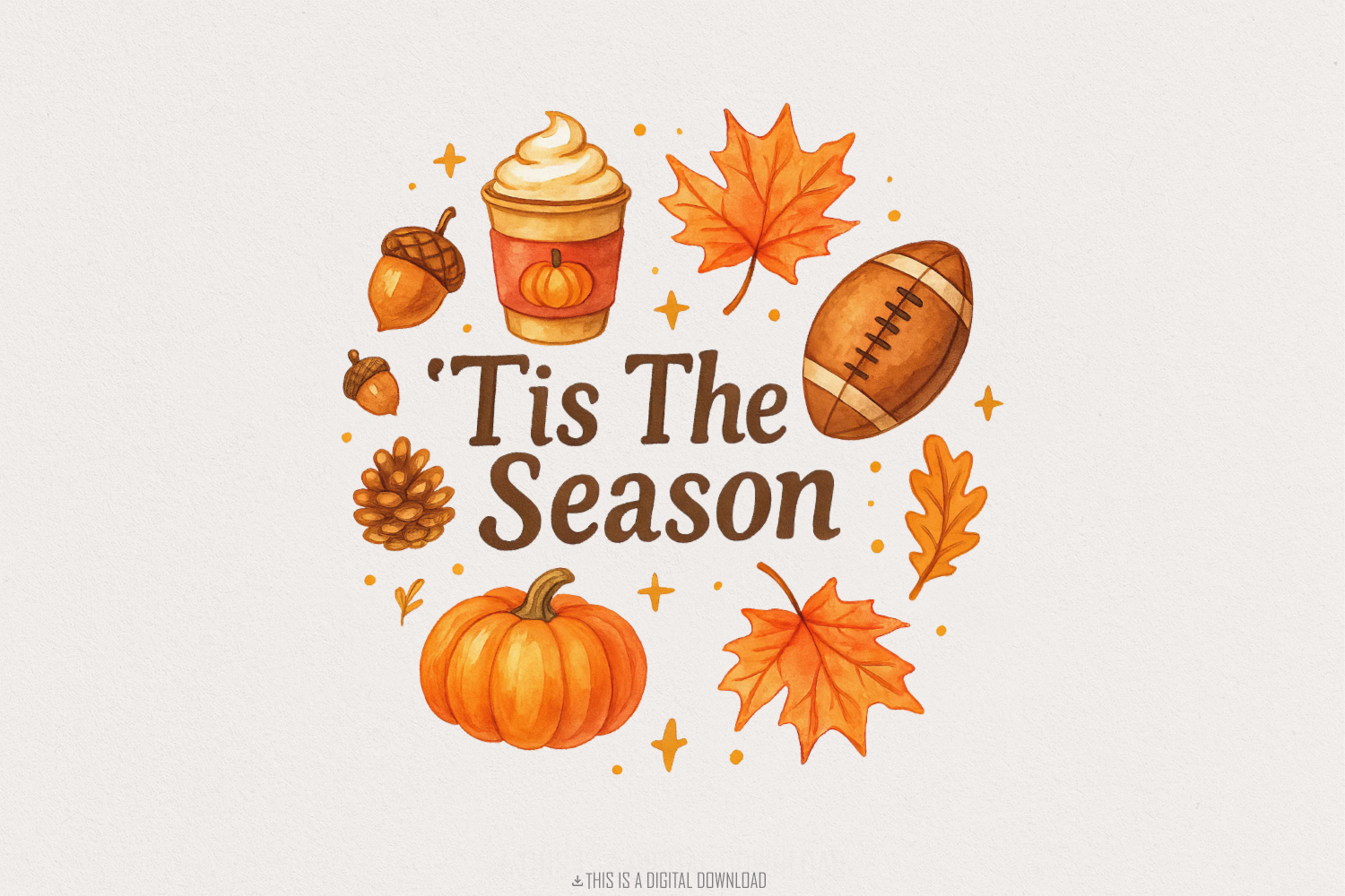 Tis The Season PNG, Fall Football, Pumpkin Football PNG, Sublimation Design, Instant Download, Illustration