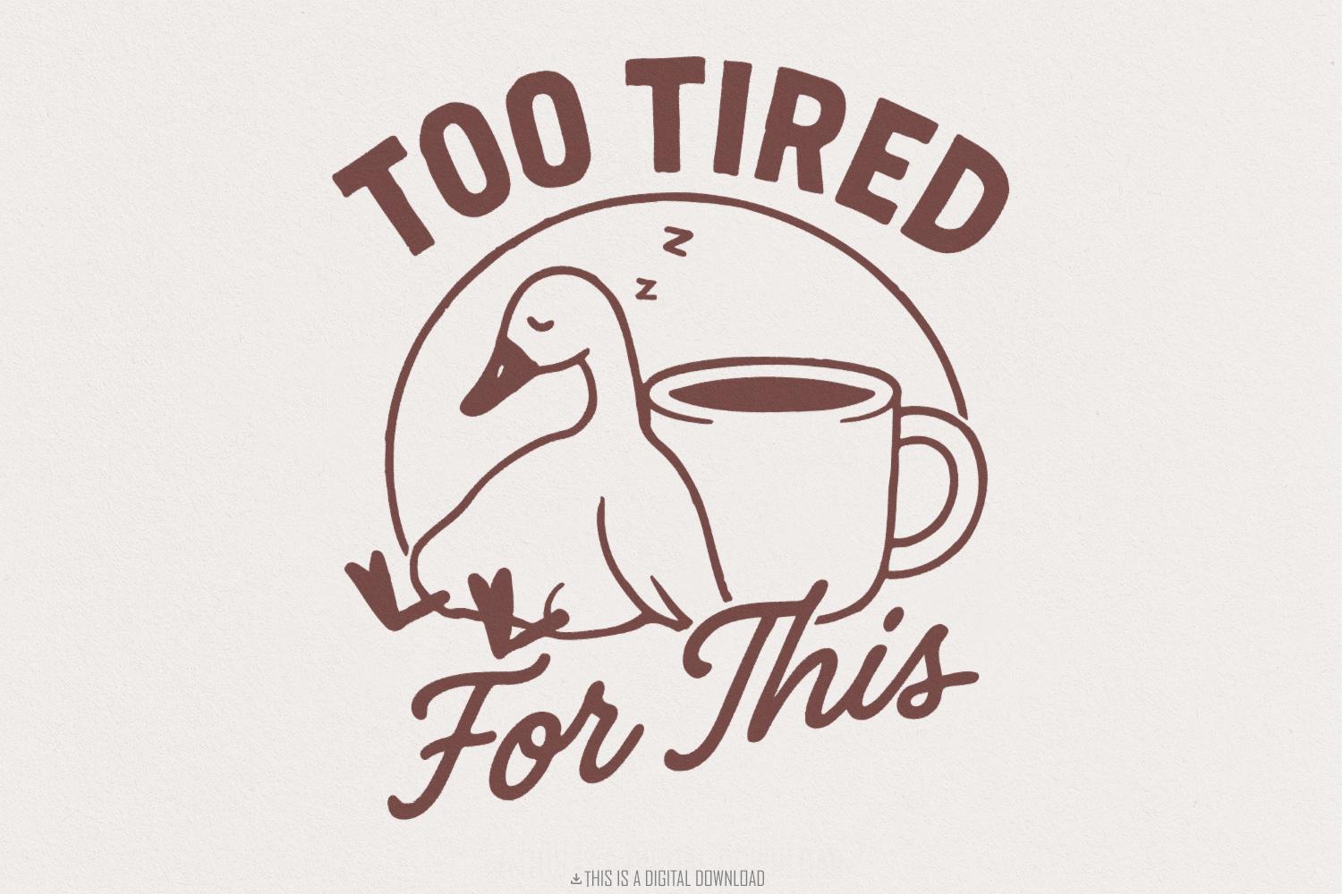 Too Tired For This Duck Coffee PNG, Cute Sleepy Duck PNG Digital Download, Funny Animal Lover Illustration
