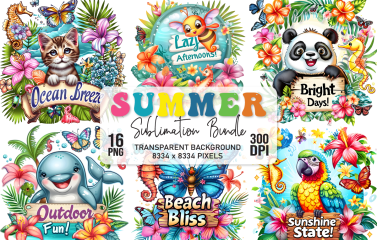 Tropical Summer Beach Sublimation Designs, Tropical Summer Clipart Bundle, Sunny Tropical Images, Summer Vacation Graphics.
