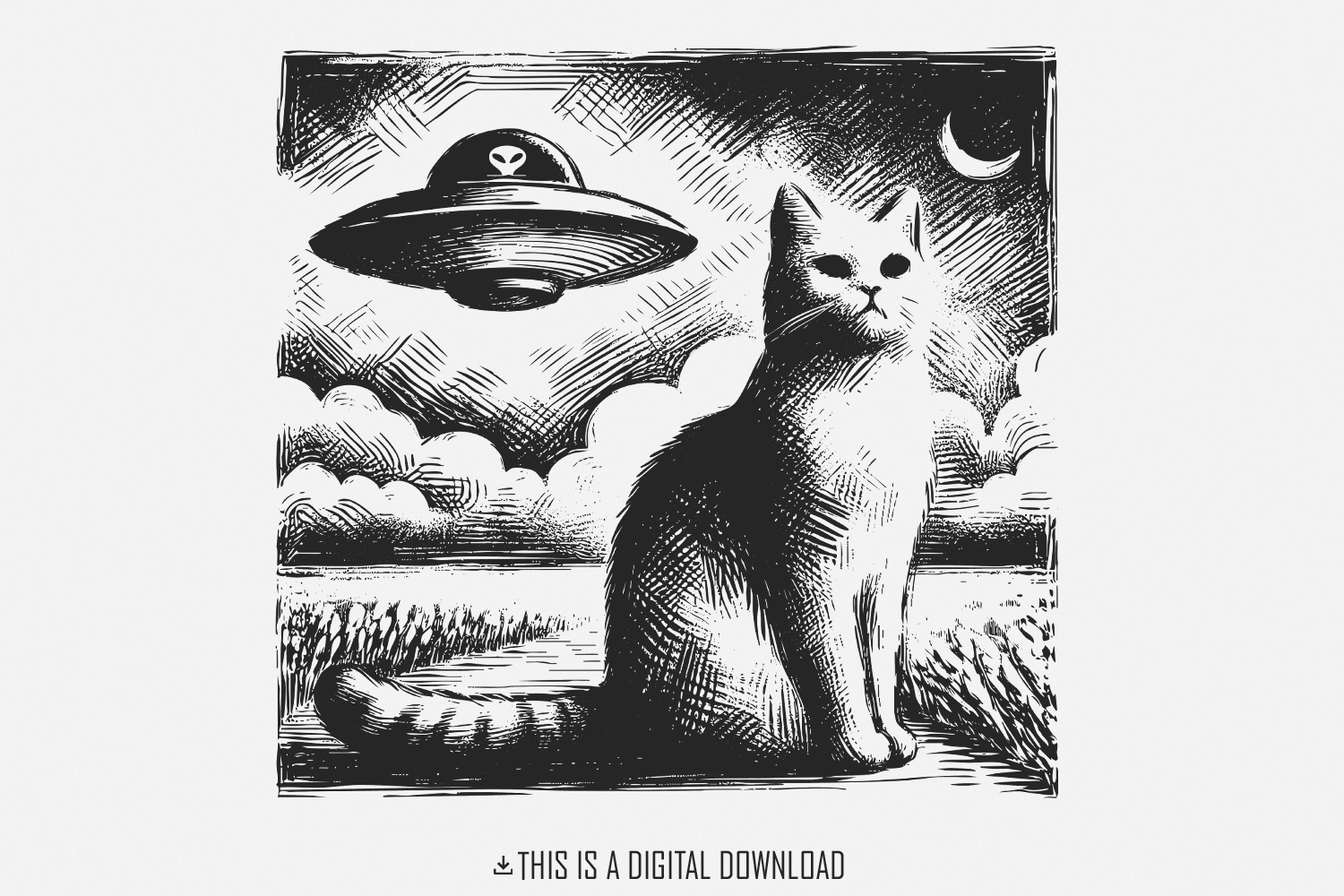 UFO Cat PNG, Funny Cat Shirt, Space Cat Meme, Alien png, Cat UFO Design, Retro Spaceship png, Illustration