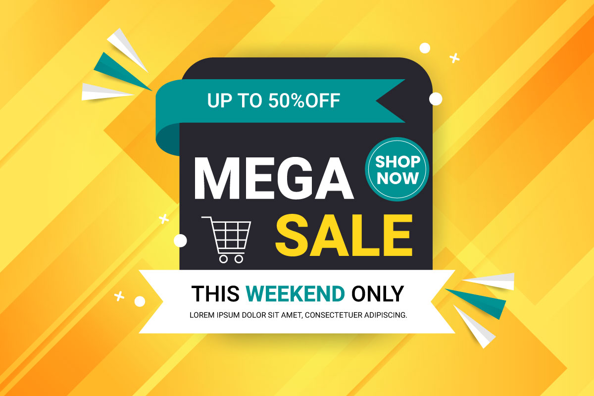 Vector mega sale discount banner set promotion with the yellow background and super offer banner template with editable text effect,Ready to use for Multipurpose uses, All main elements are editable and customizable.