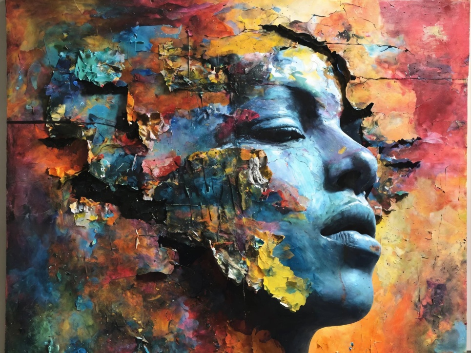 Welcome to a mesmerizing journey through digital creativity! This stunning AI-generated artwork represents the beautiful collision between human imagination and artificial intelligence. Each piece in this four-panel collection tells a story of explosive creativity - from the dynamic hand reaching through swirling colors to the serene profile emerging from a kaleidoscope of hues.