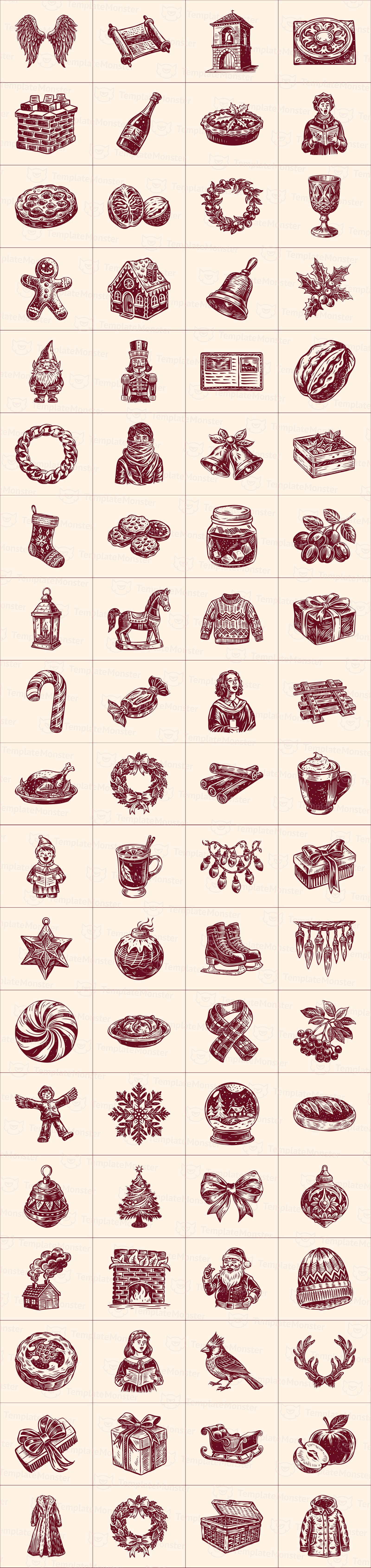 Step into a world of nostalgic wonder with this heartwarming set of Vintage Christmas Illustrations. Brimming with cozy charm, each piece is lovingly crafted to capture the magic of holiday traditions, twinkling lights, joyful characters, festive treats, and timeless decor. Whether you're designing holiday cards, branding seasonal products, or adding a retro touch to your creative projects, this collection brings the spirit of a classic Christmas to life in the most delightful way.