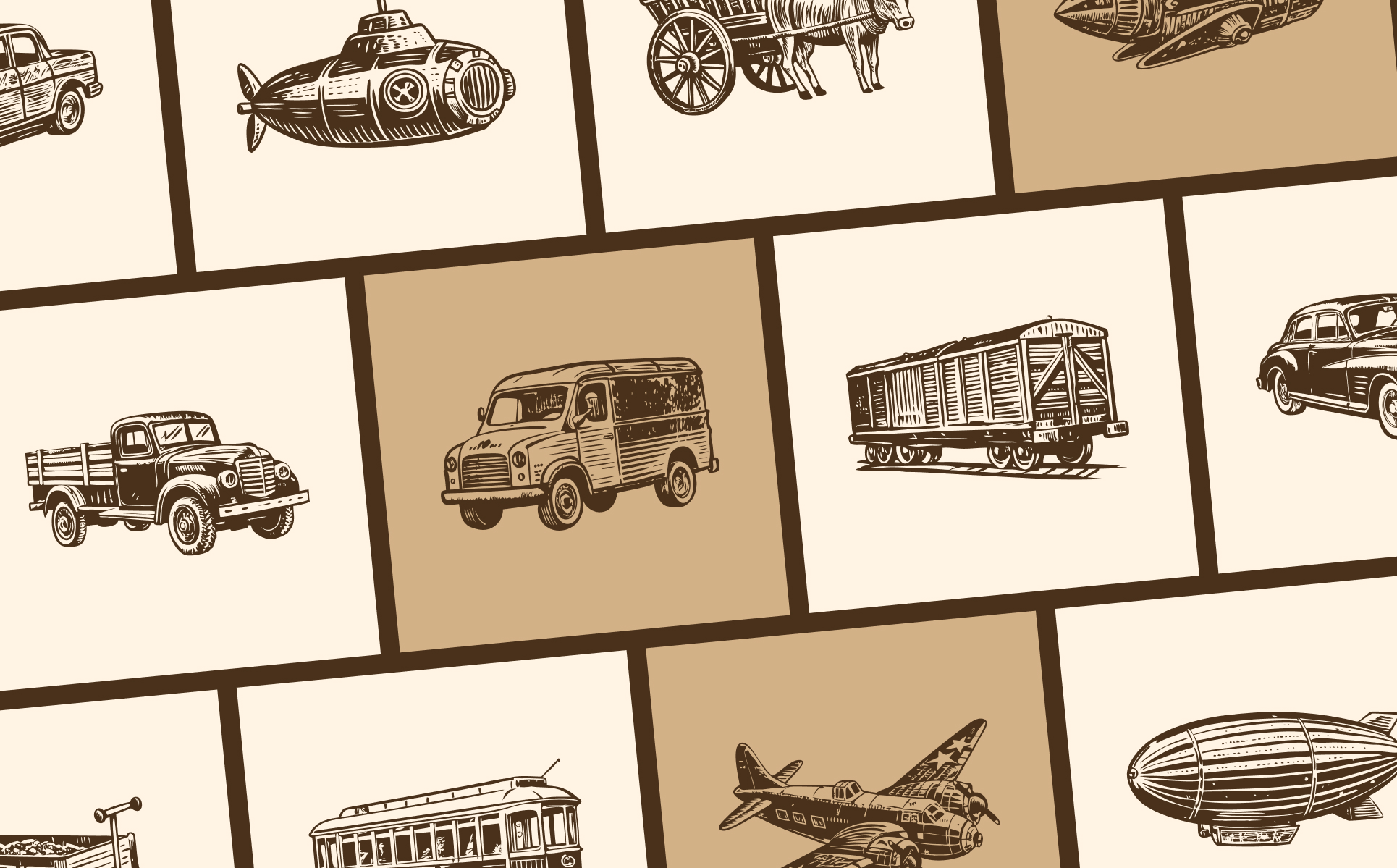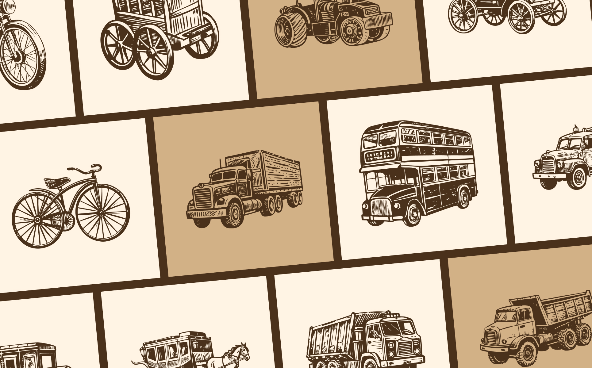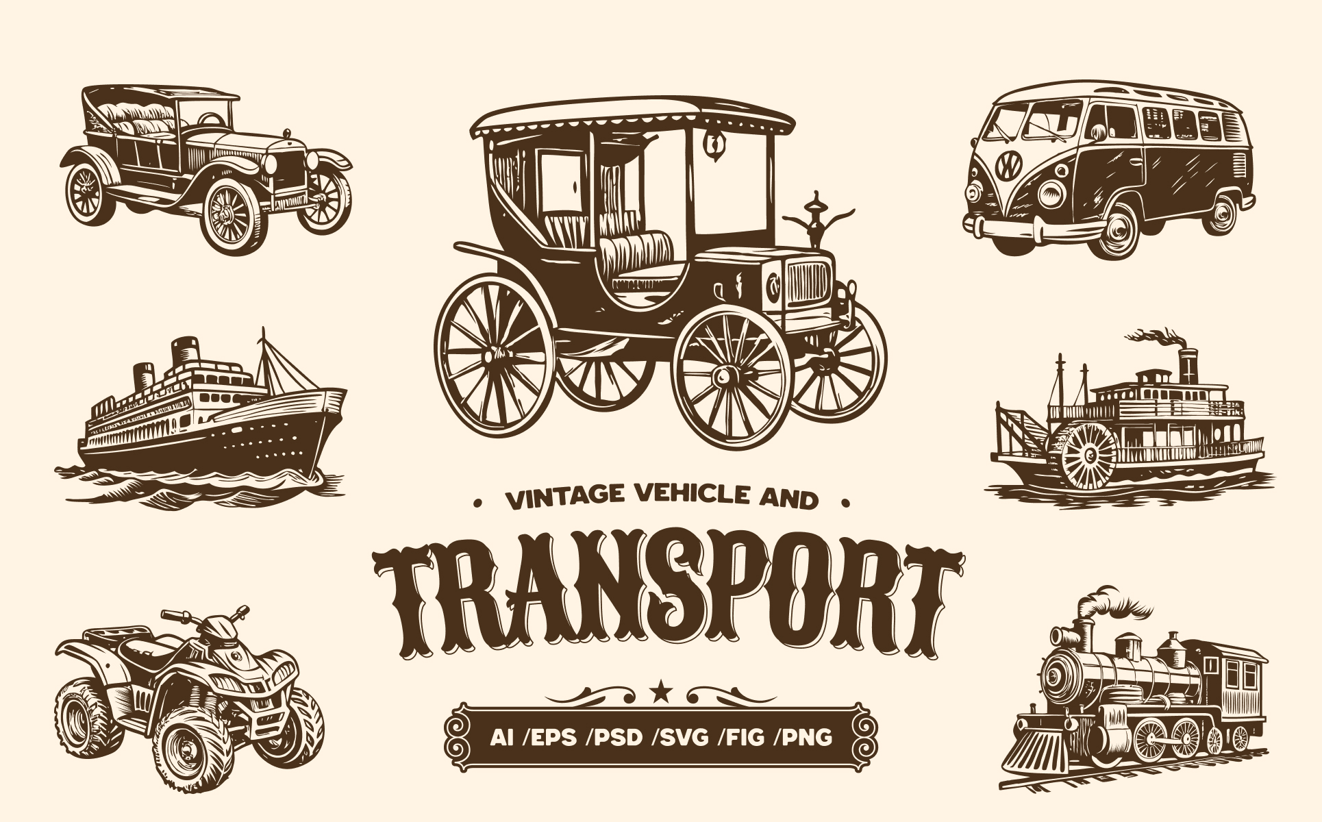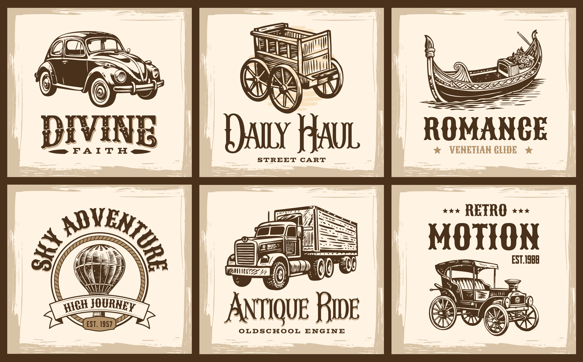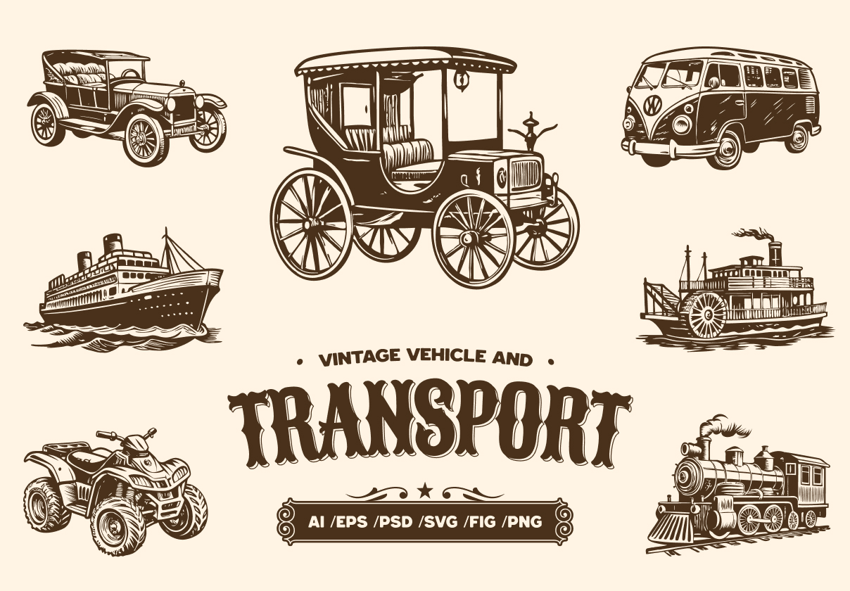 Fuel your creativity with this Vintage Transport and Vehicle Icon Set! Packed with classic and antique vehicle illustrations, this versatile collection is perfect for designers, hobbyists, and creatives looking to add a nostalgic touch to their projects. Whether for websites, apps, branding, or print, these retro rides will bring timeless charm to your designs.
