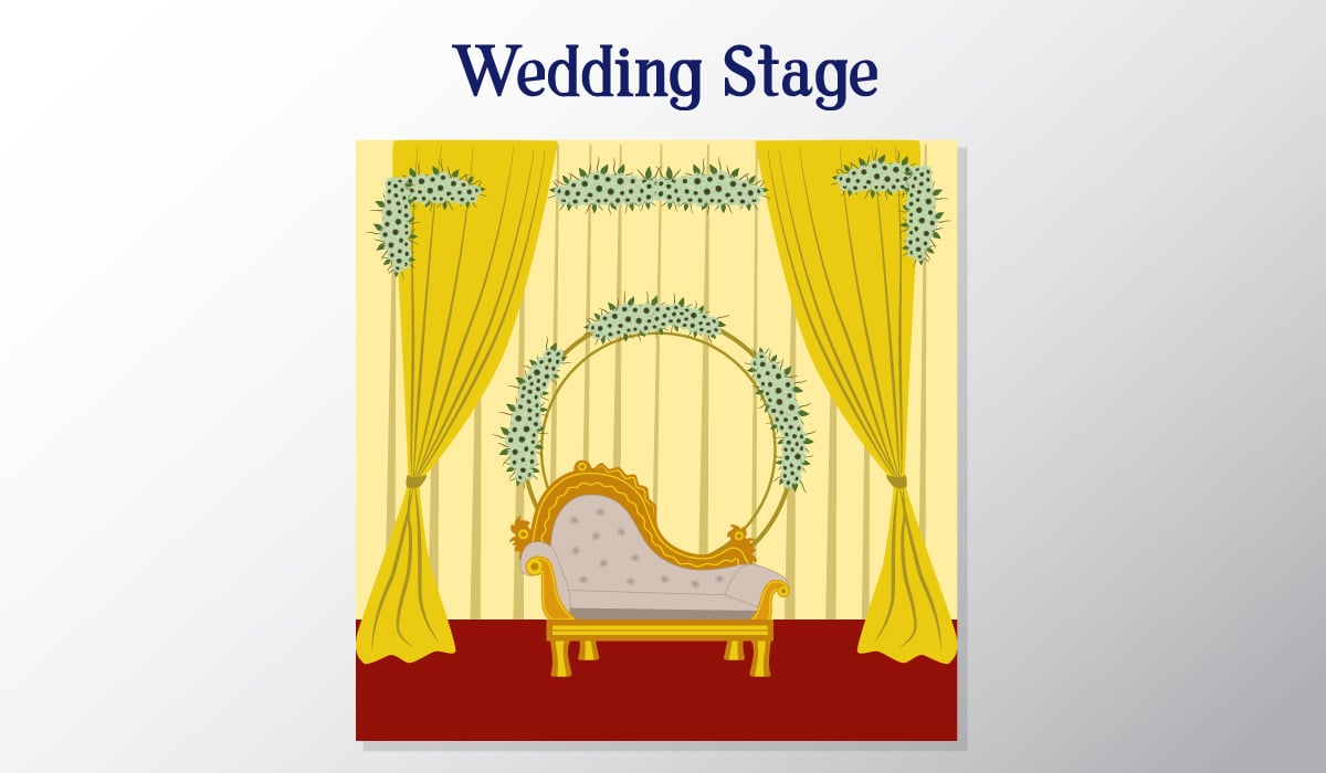 Beautiful and creative design of the wedding or marriage stage decoration with couple chair, flowers, and curtains in a very attractive and colorful style for any function or celebration. The files included are Adobe Illustrator, Adobe EPS, JPEG, and PDF formats in a zipped folder.