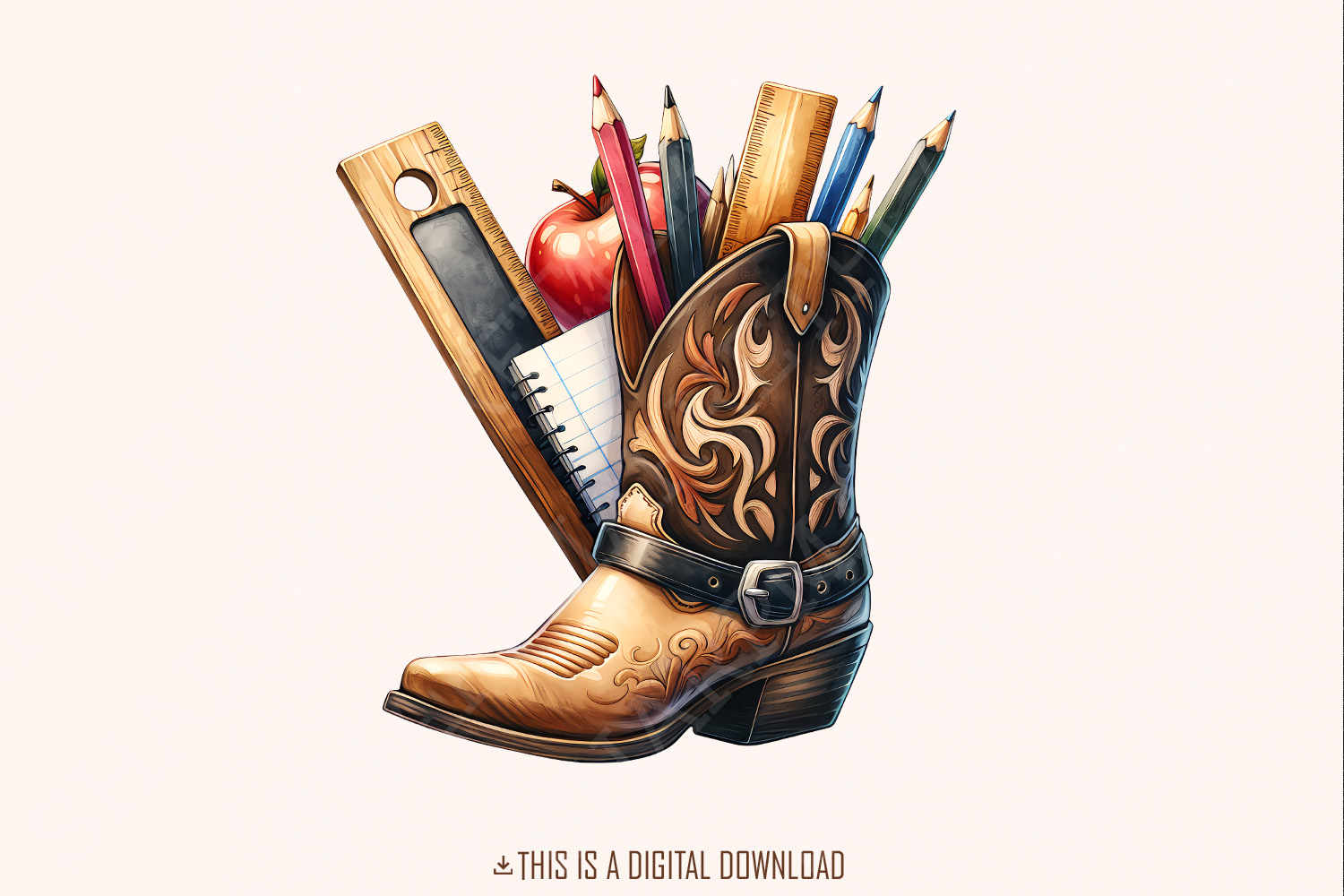 Western Back To School PNG, Western Teacher png, Teacher Design PNG, Girl Back To School png, Western School Supplies PNG, Teacher png