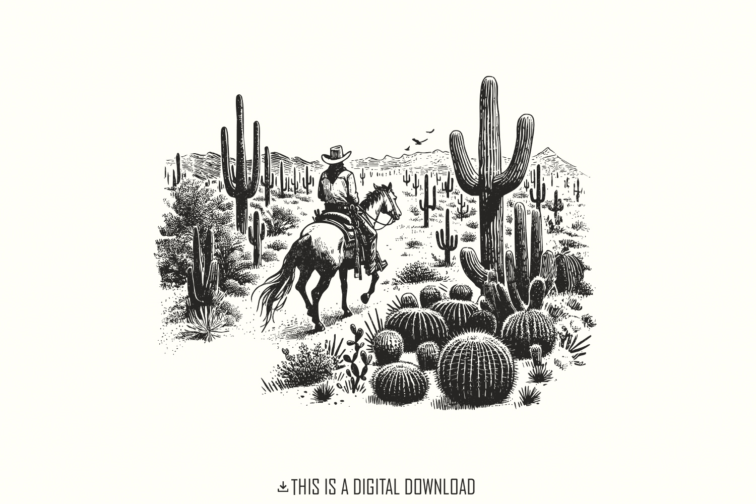 Western Cowboys PNG, Western Sublimation Design, Desert Cactus Line Art, Vintage Retro Cowboy, Country Boho Cowgirl, Digital Download