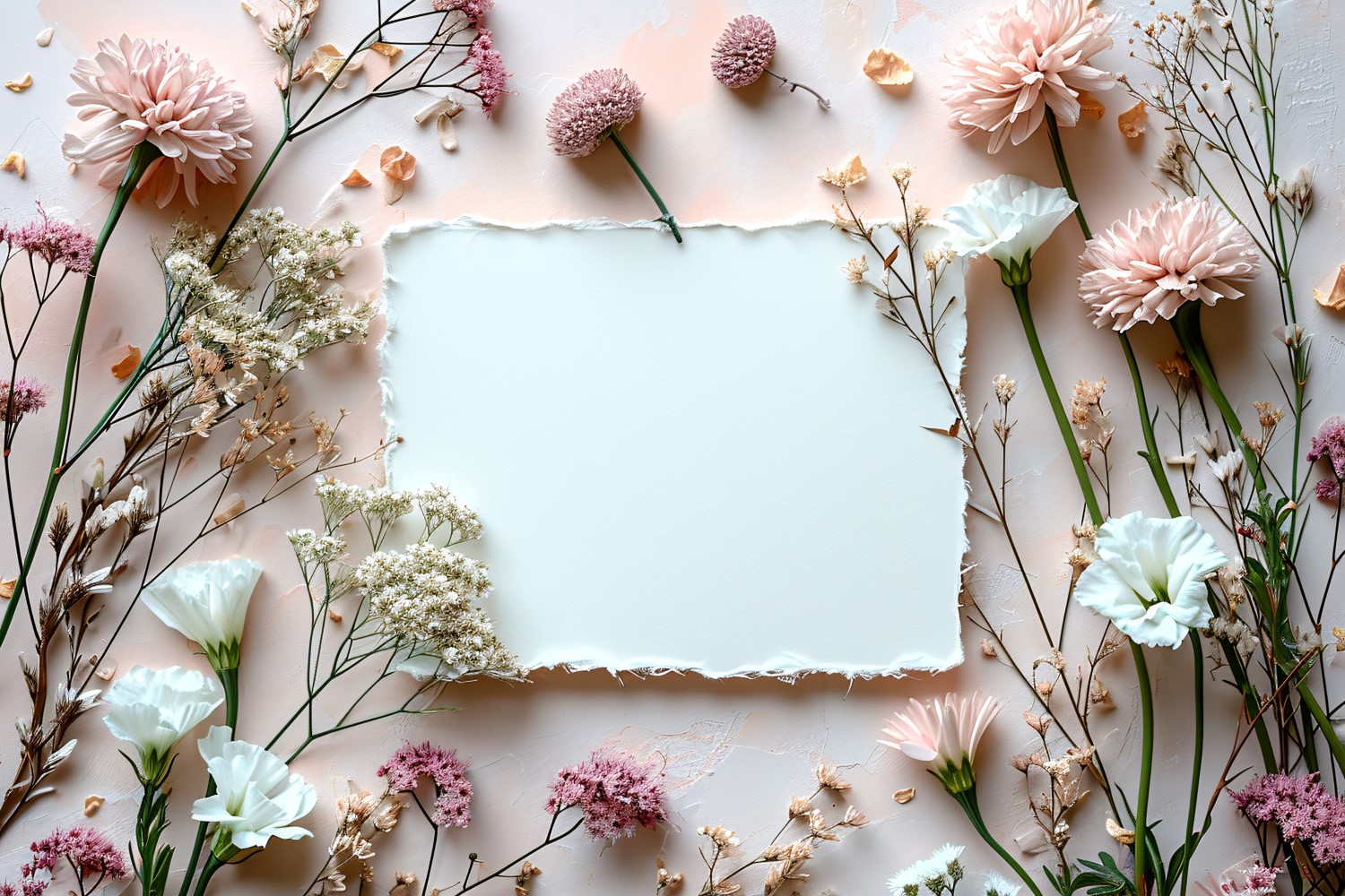 Ideal for wedding invitations, this mock-up in a dusty light brown color theme showcases natural leaves, branches, and plants in a vase. The AI-generated wallpaper is perfect for printing, publishing, card presentations, and digital media usage, offering a timeless and elegant design for all your creative projects.
