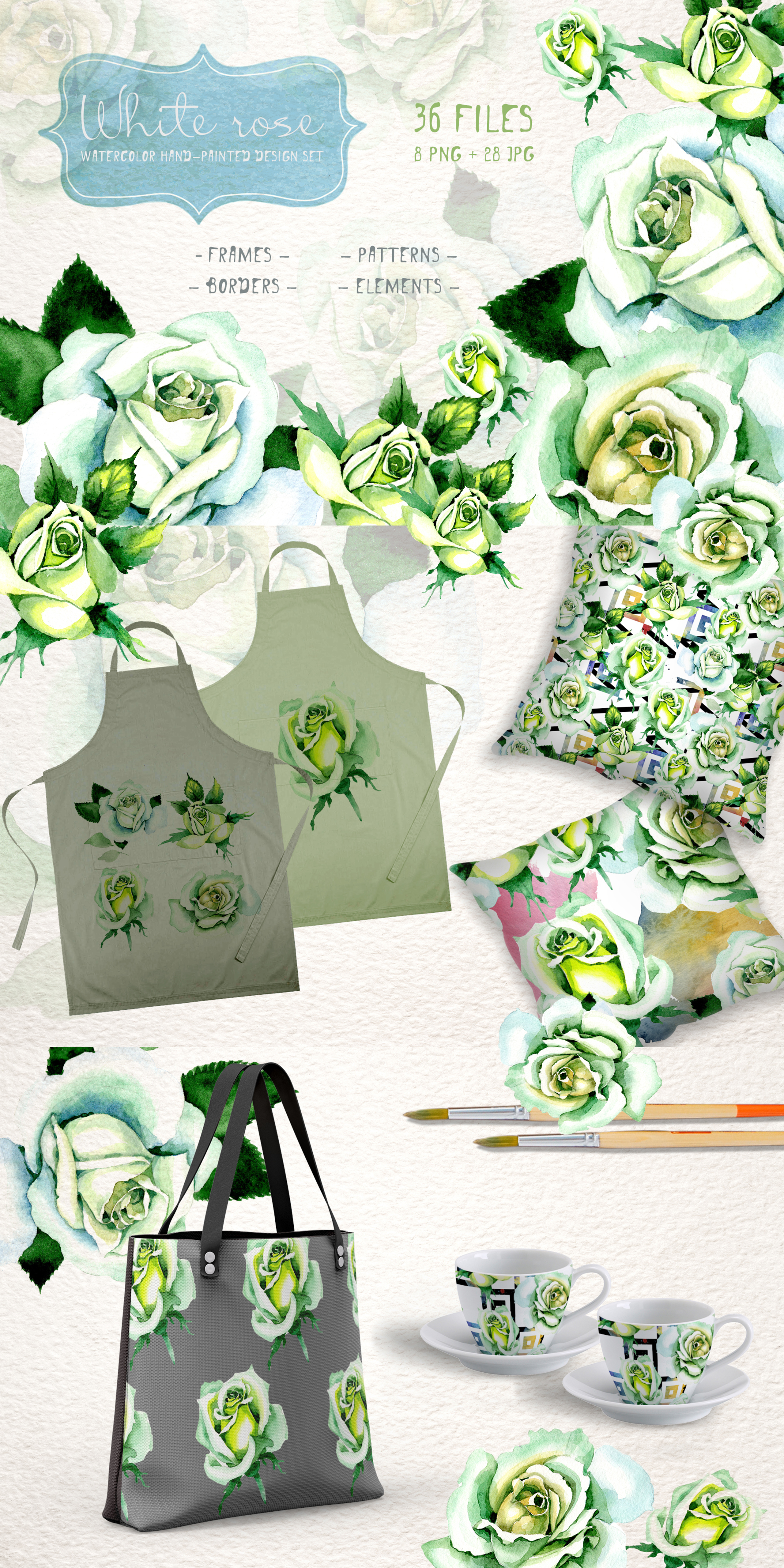 Aquarelle flowers white roses set of 36 files. Ideal material for DIY, wedding invitations, greeting cards, quotes, blogs, posters and more.