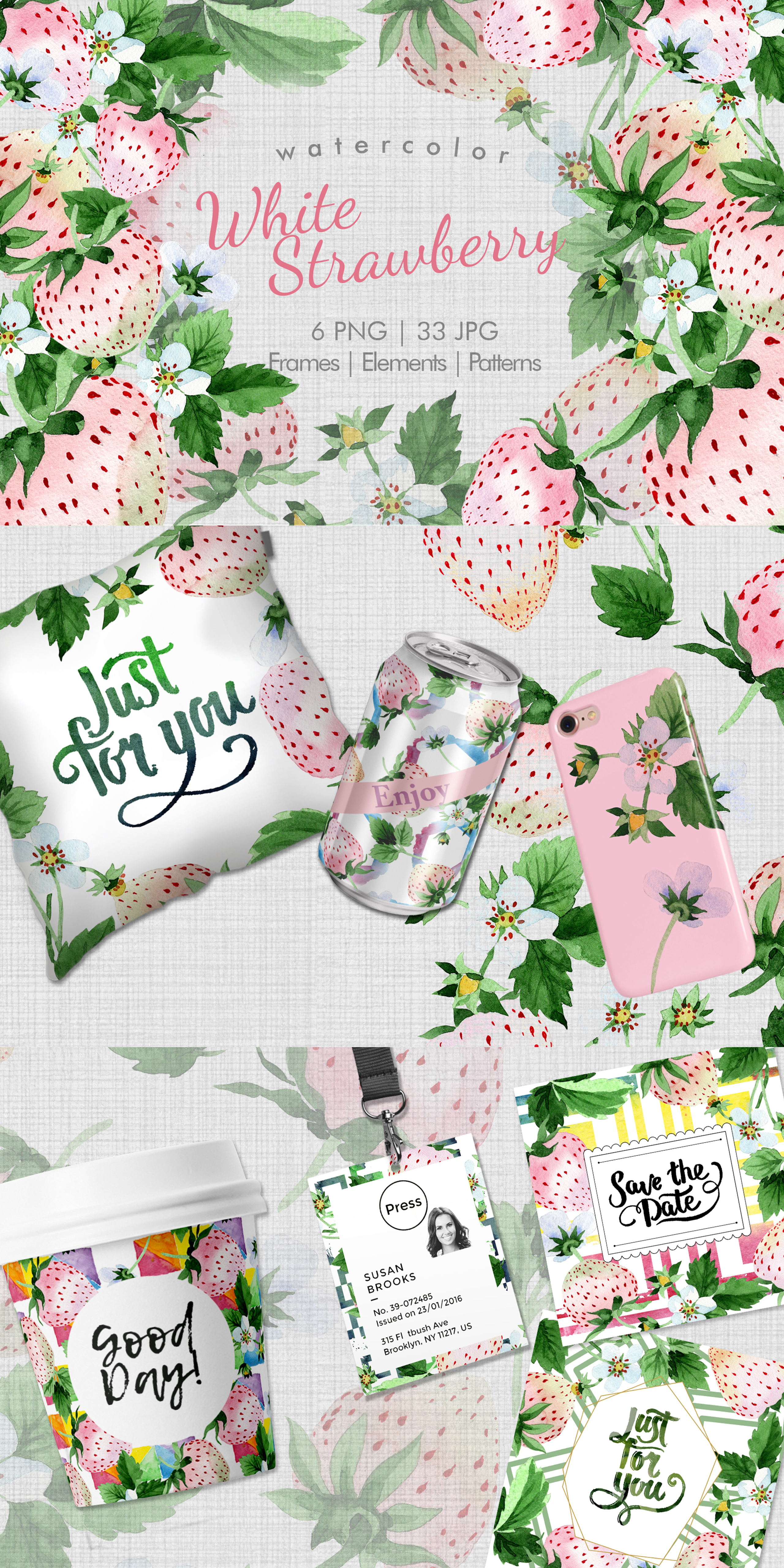 White Strawberry fruit in a watercolor set of 39 files. Aquarelle fruit for background, texture, wrapper pattern or menu. Ideal material for DIY, wedding invitations, greeting cards, quotes, blogs, posters and more.