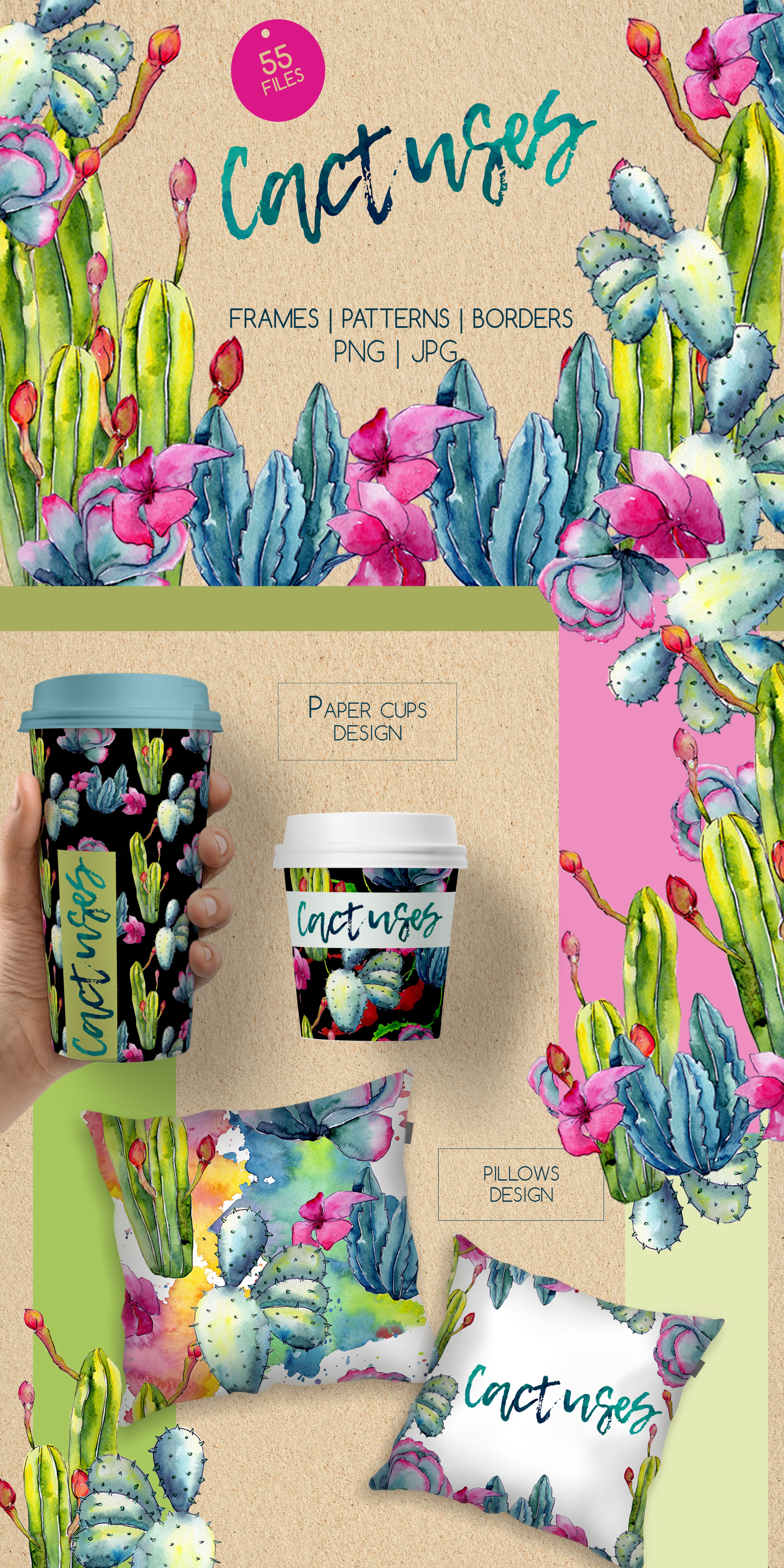 Tropical wildflower cactus watercolor set of 55 files. Ideal material for DIY, wedding invitations, greeting cards, quotes, blogs, posters and more.