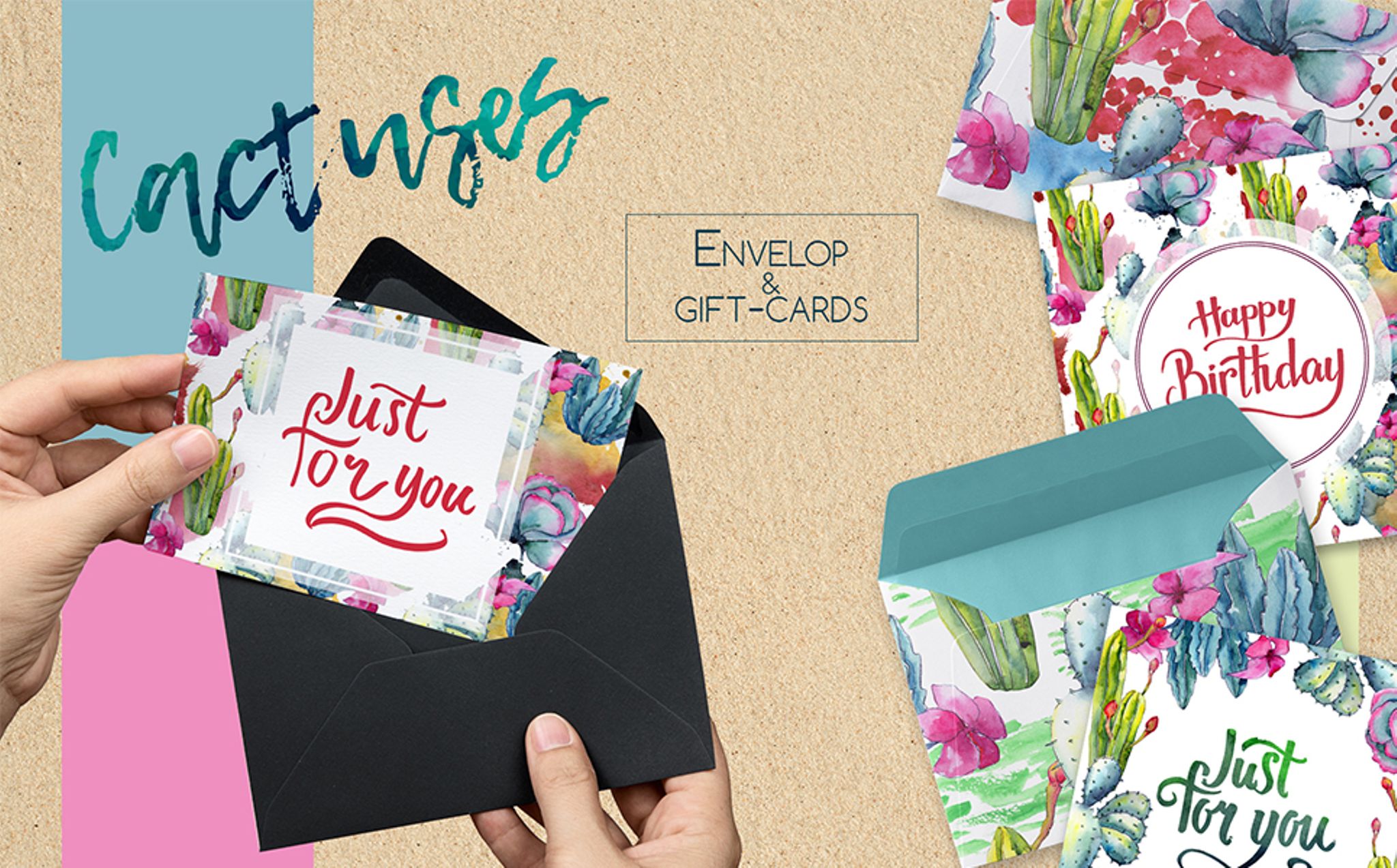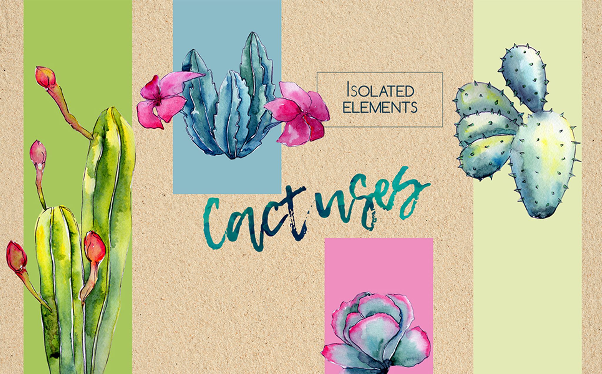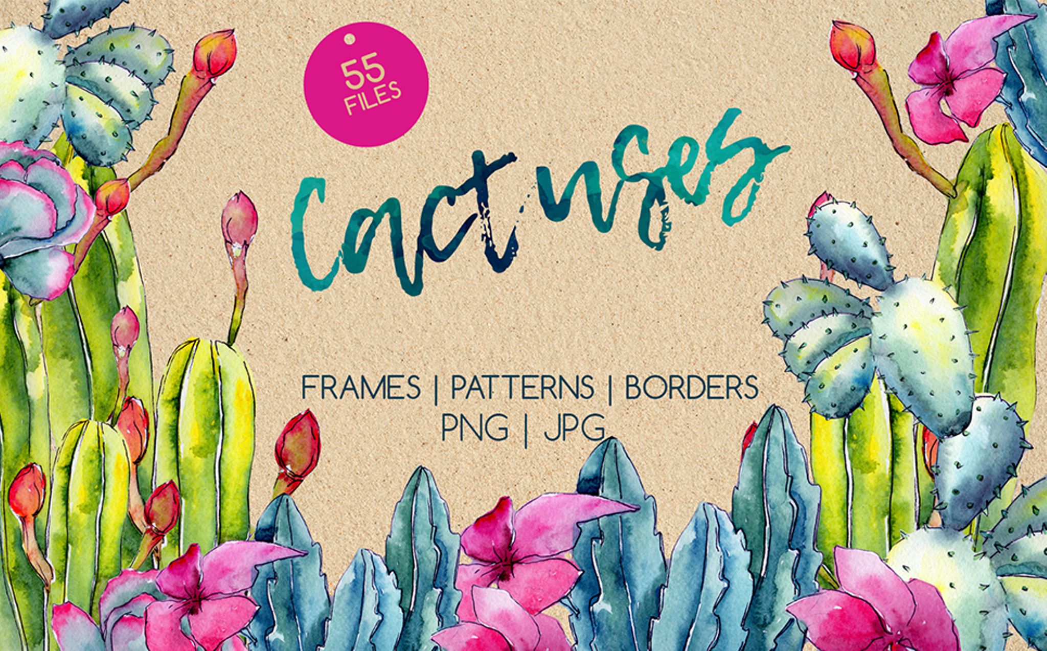 Tropical wildflower cactus watercolor set of 55 files. Ideal material for DIY, wedding invitations, greeting cards, quotes, blogs, posters and more.