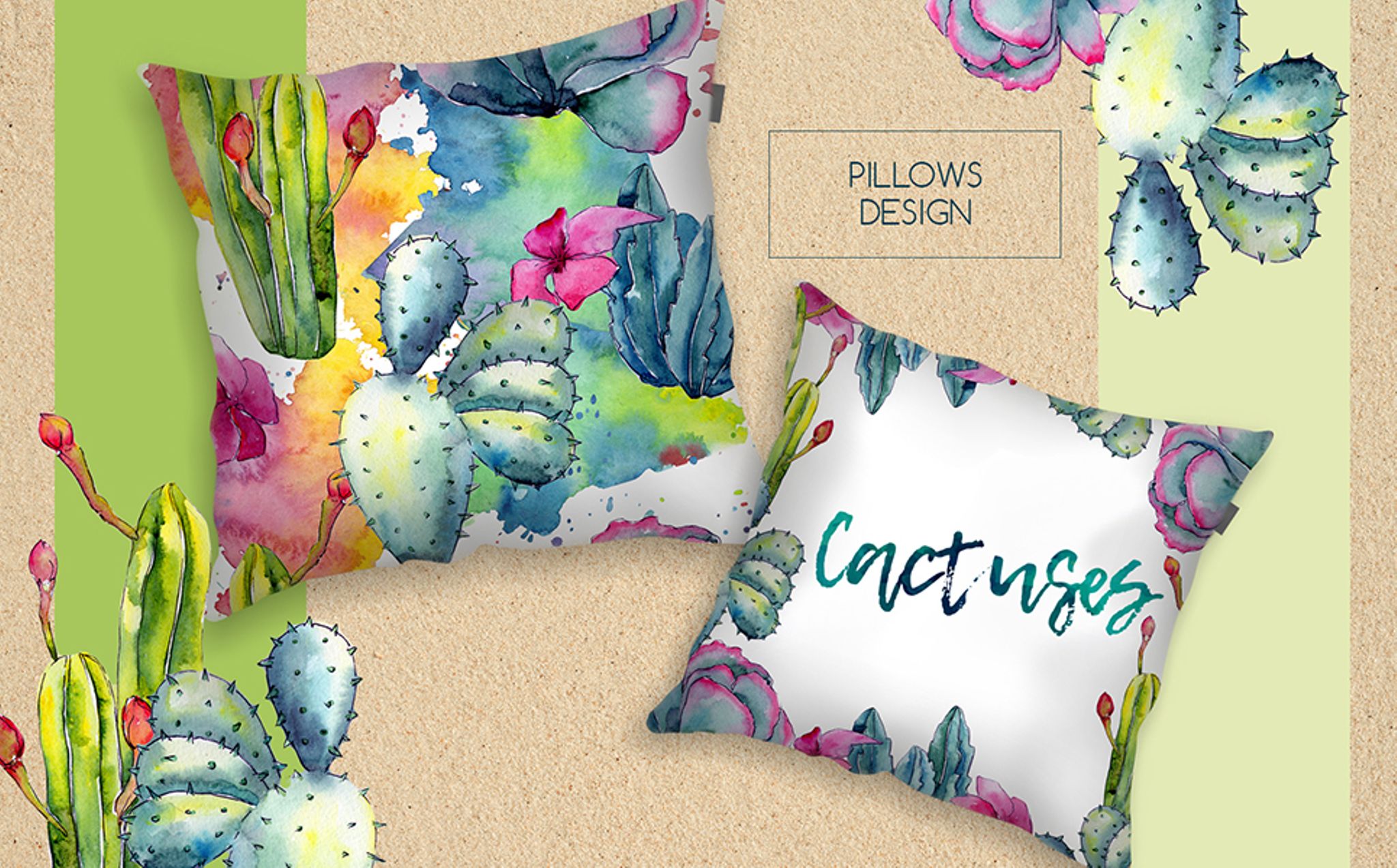 Wildflower Cactus Watercolor - - Illustration