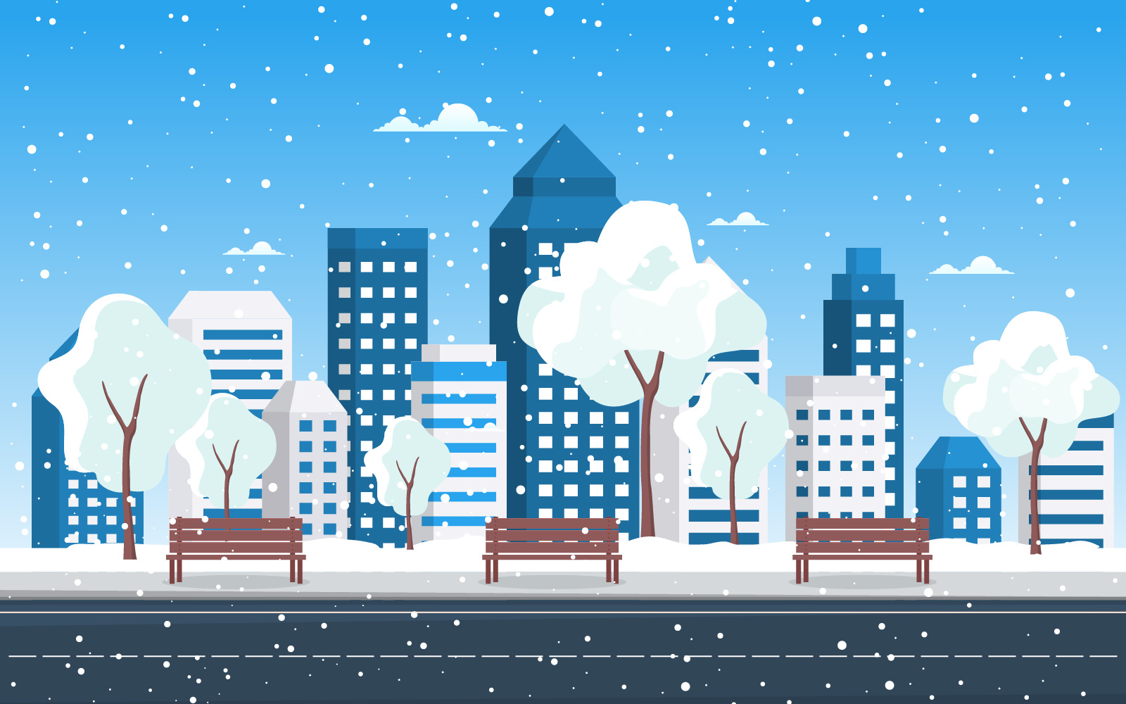 Winter Snow Tree Snowfall City Building Landscape Illustration