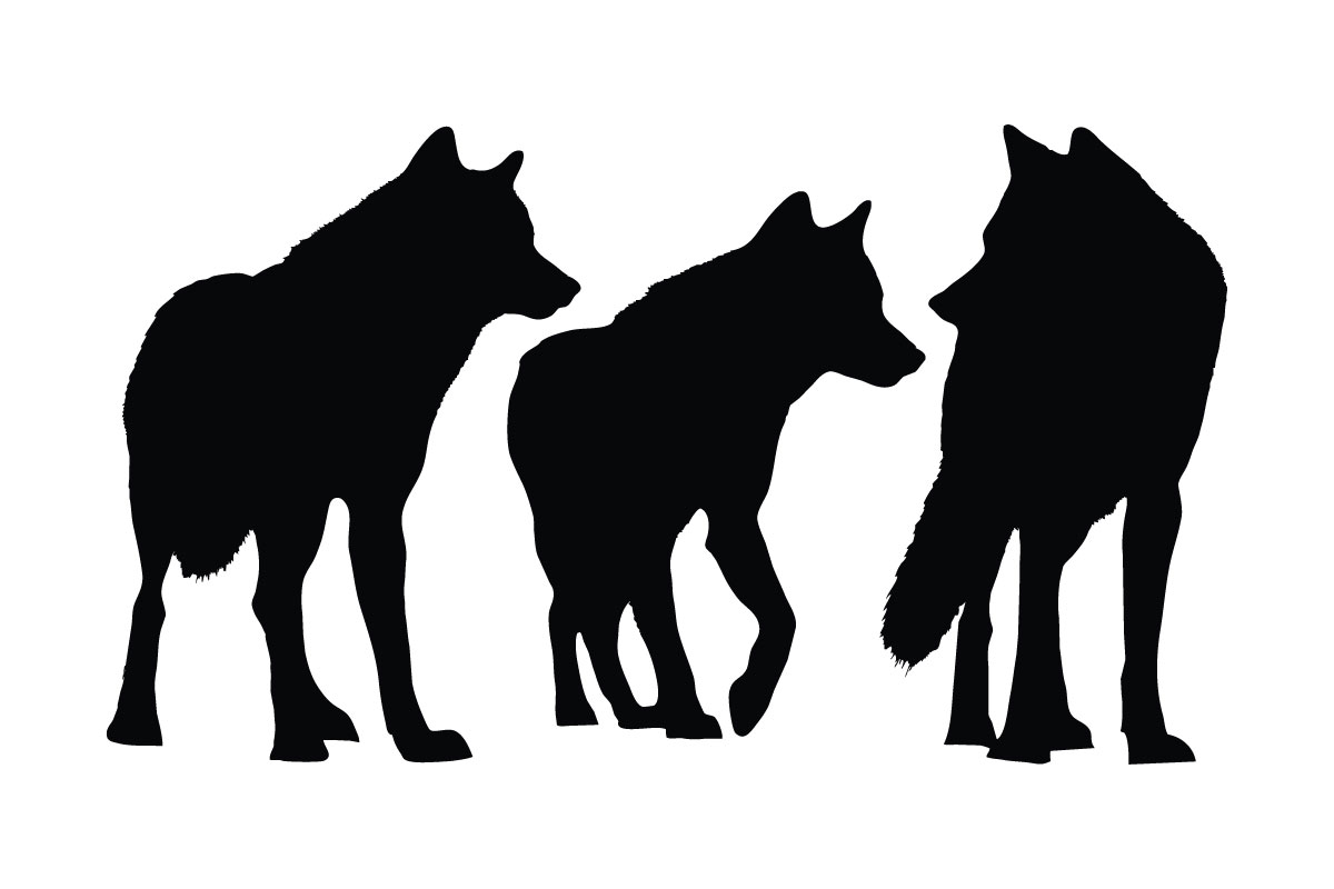 Wolf standing silhouette collection. Wolves walking in different positions, silhouette set vector. Adult wolf silhouette collection on a white background. Wild carnivorous animals like wolves and coyotes, full body silhouette bundles.