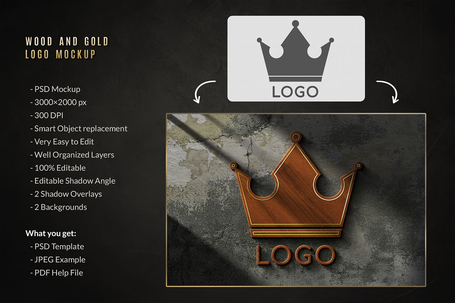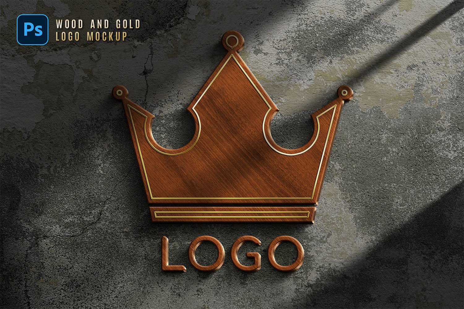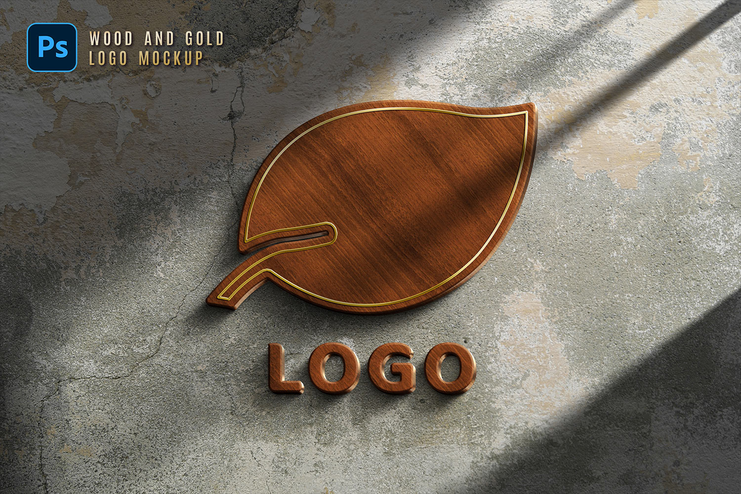 Transform your logo into a striking 3D wooden wall sign with a gold outline using this PSD mockup template. Perfect for adding a luxurious and rustic touch to your branding designs.