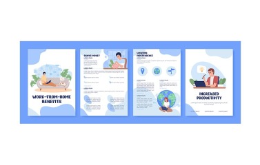 Work from home benefits flat vector brochure template. Booklet, leaflet printable flat color designs. Editable magazine page, reports kit with text space. Nerko One, Quicksand, Comfortaa fonts used