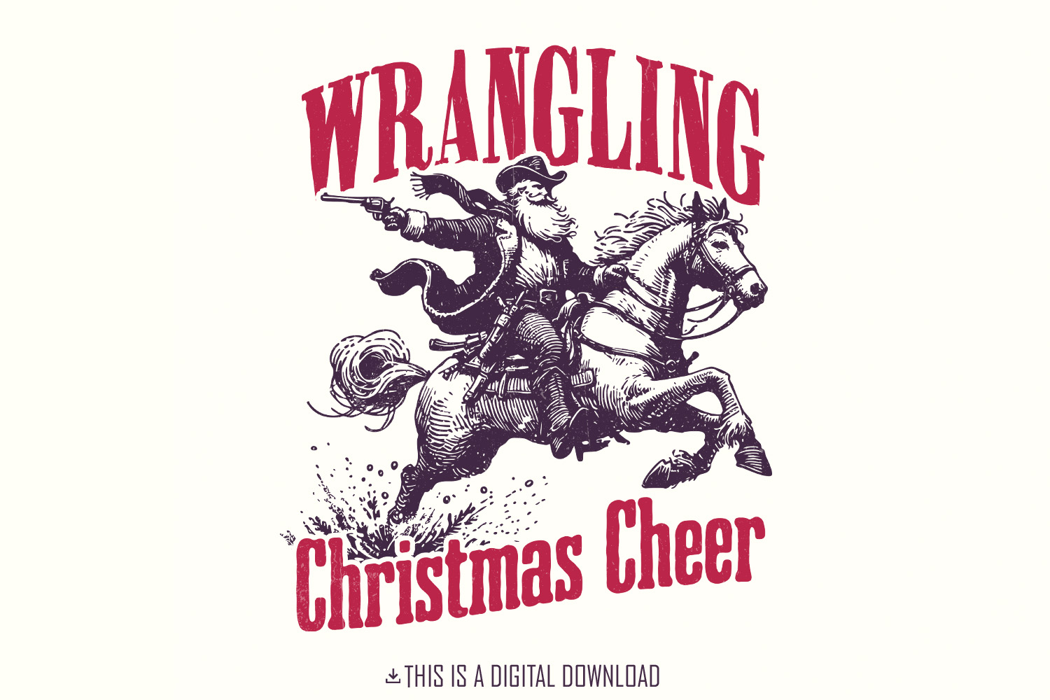 Wrangling Cowboy, Santa Western PNG, Sublimation Designs, Vintage Cowboy Rodeo, Retro Christmas Download, Trendy Western PNG