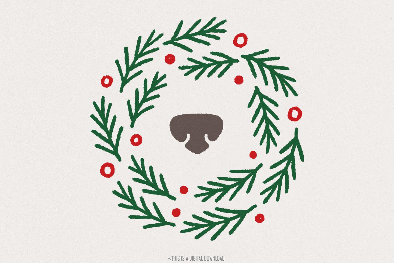 Wreath Bear Nose PNG, Cute Christmas Wreath PNG, Holiday Animal Art - Festive Bear Wreath PNG for Shirts, Winter Greenery Sublimation Design