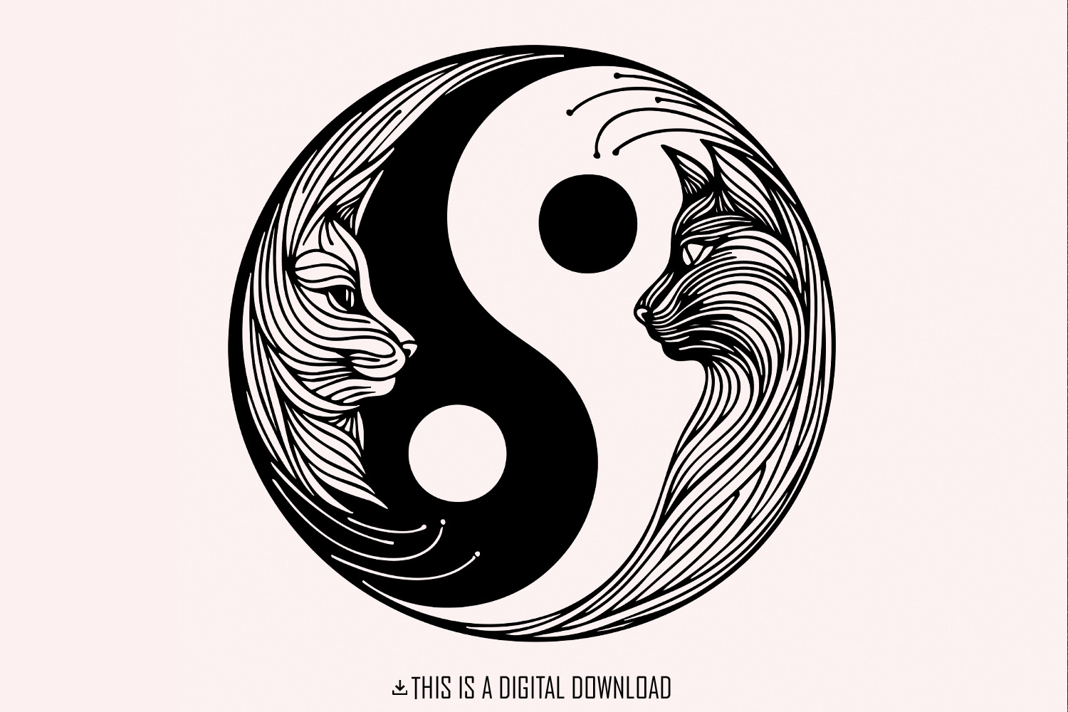 Yin Yang Cats png, Cat Silhouette, Vintage Cats, Black White Cat Clipart, Cute Cats png, Yinyang Illustration