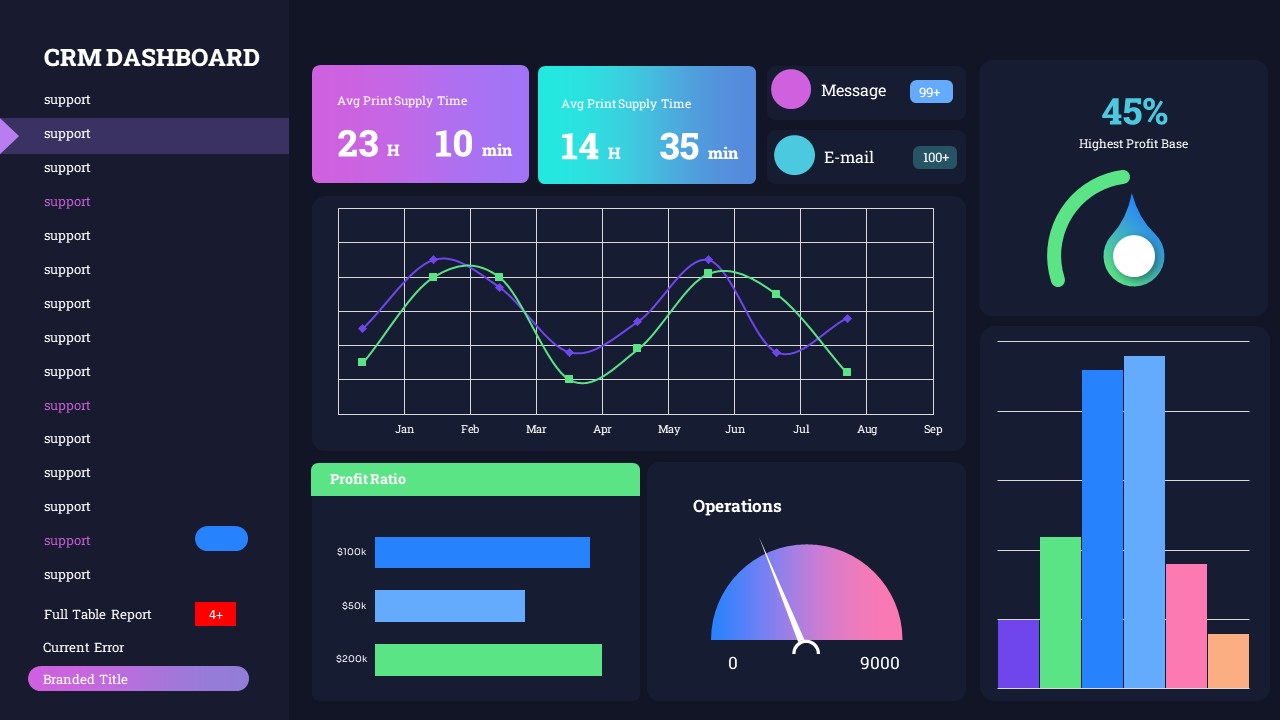 A live dashboard can surface metrics from multiple data sources, and display them side by side. This presents the opportunity to visualize only the most important metrics, necessary for managing a specific system or process.