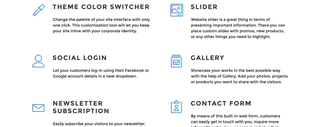 Parallax scrolling effect offers your viewers an illusion of depth in 2D spaces of your website. It makes your resource more vivid and unique. Parallax is good for spicing up a single-page site, livening up infographics, or even exhibiting a portfolio.