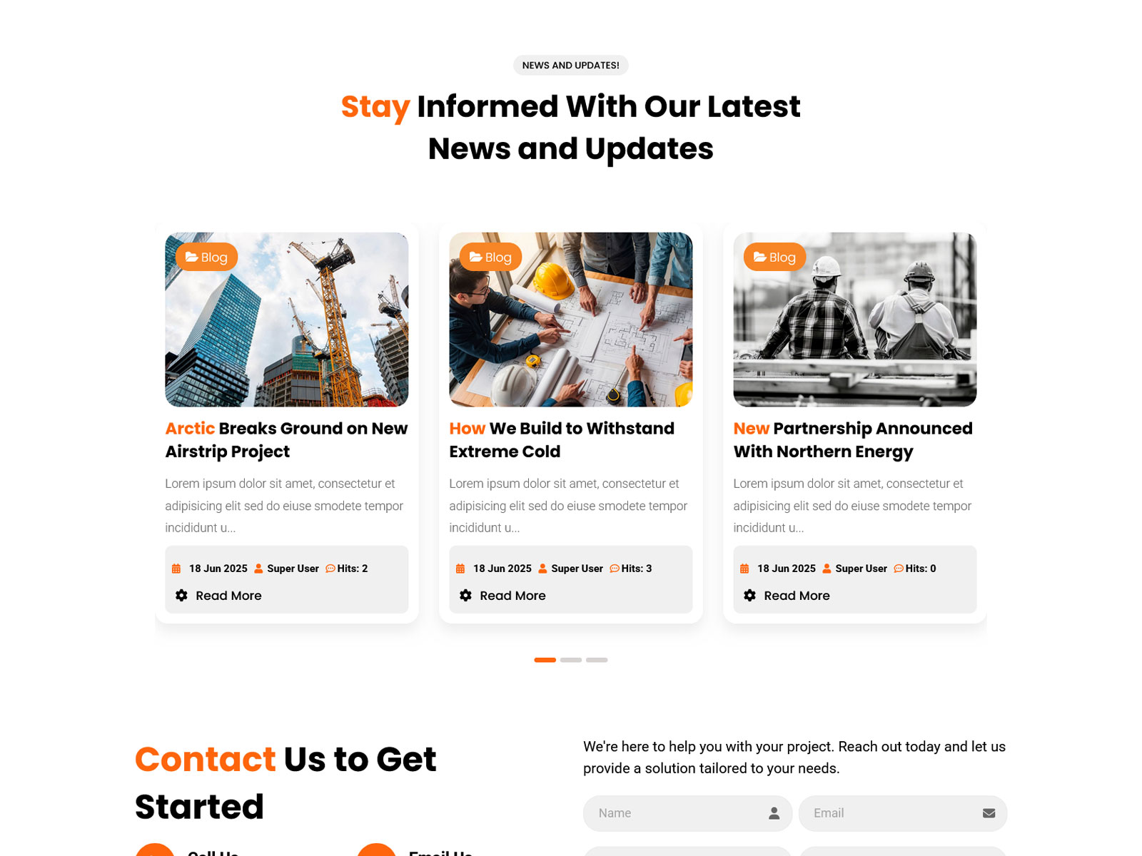 Arctic Construction is a powerful, professional Joomla template built specifically for construction, engineering, industrial services, and infrastructure companies operating in harsh or remote environments. Designed with rugged precision and a modern aesthetic, it blends bold visuals with functional layouts to showcase projects, services, and team expertise.