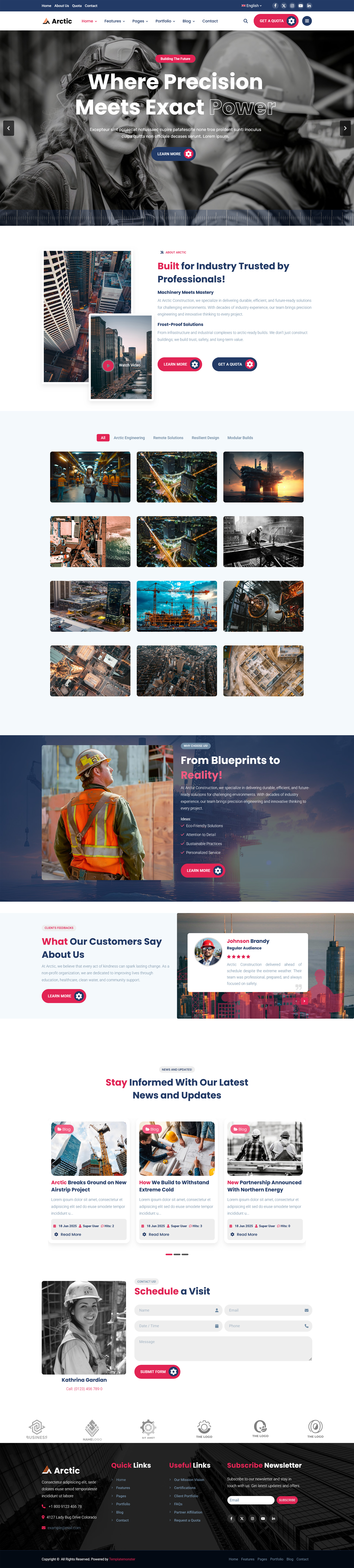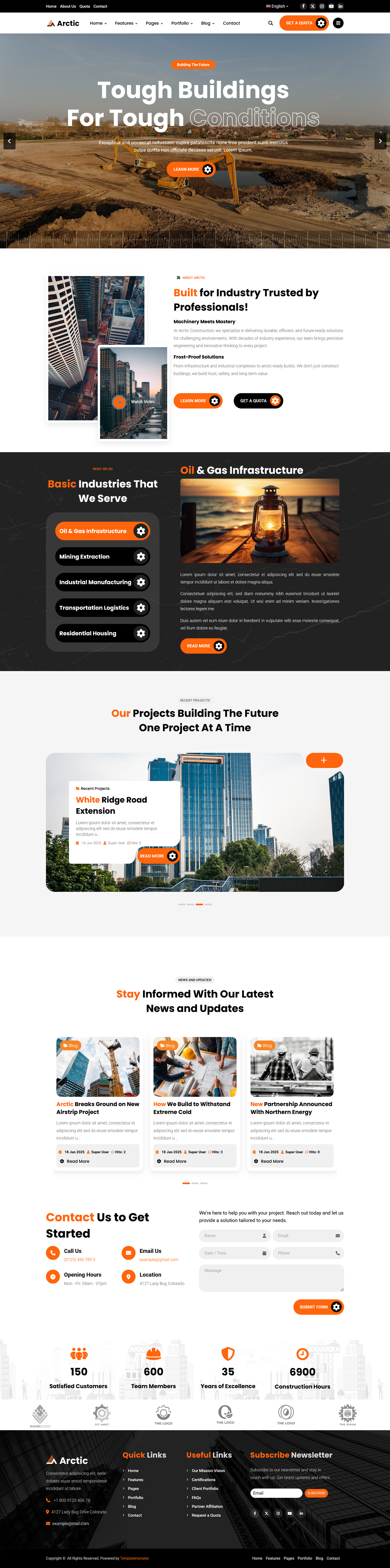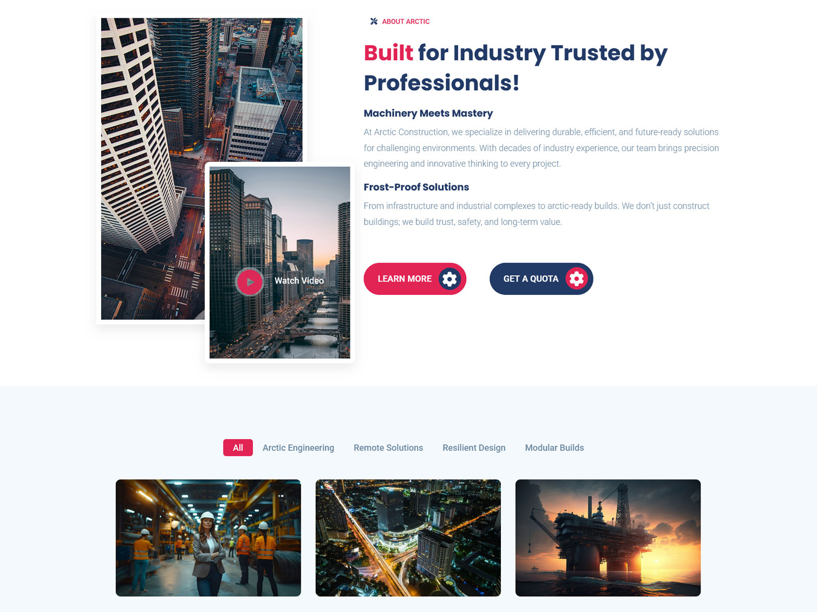 Whether you're building pipelines in permafrost, modular housing in remote zones, or industrial hubs in extreme weather, Arctic Construction gives you the flexibility to present your brand with confidence. Featuring responsive design, customizable modules, project galleries, and clear call-to-actions, this template is engineered to perform as well as your builds.