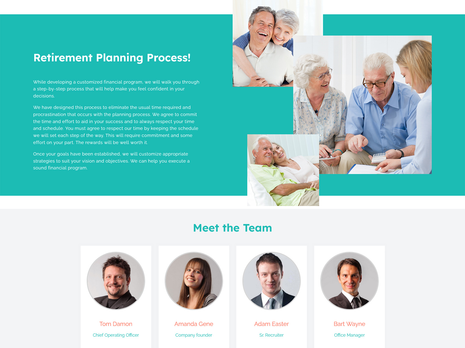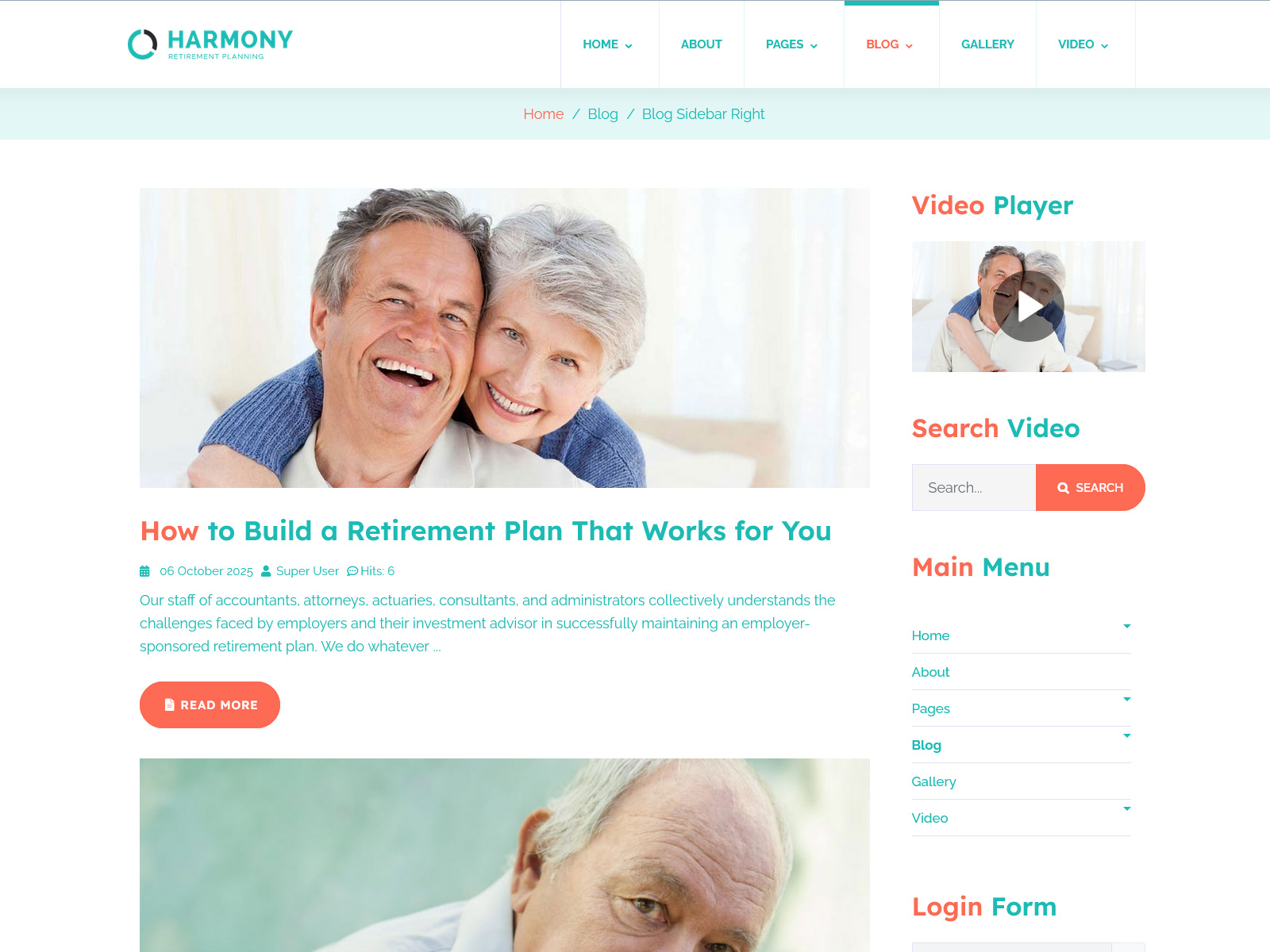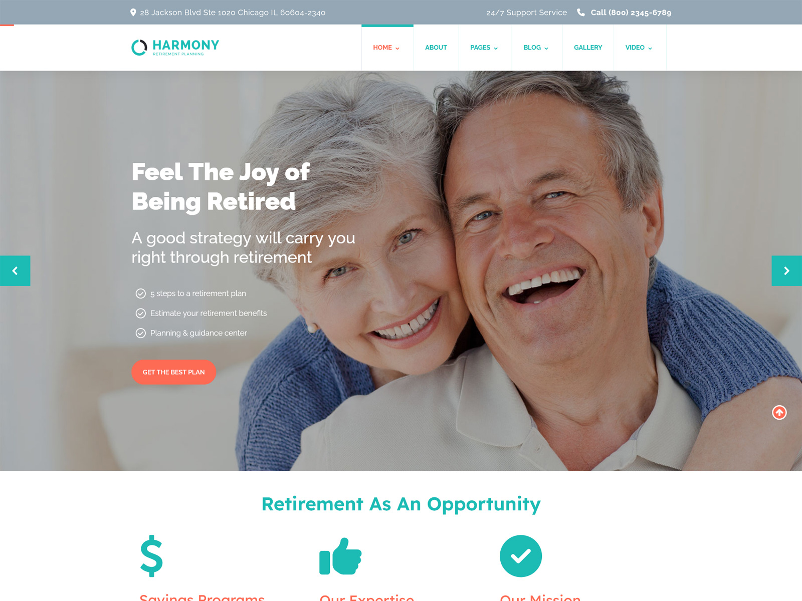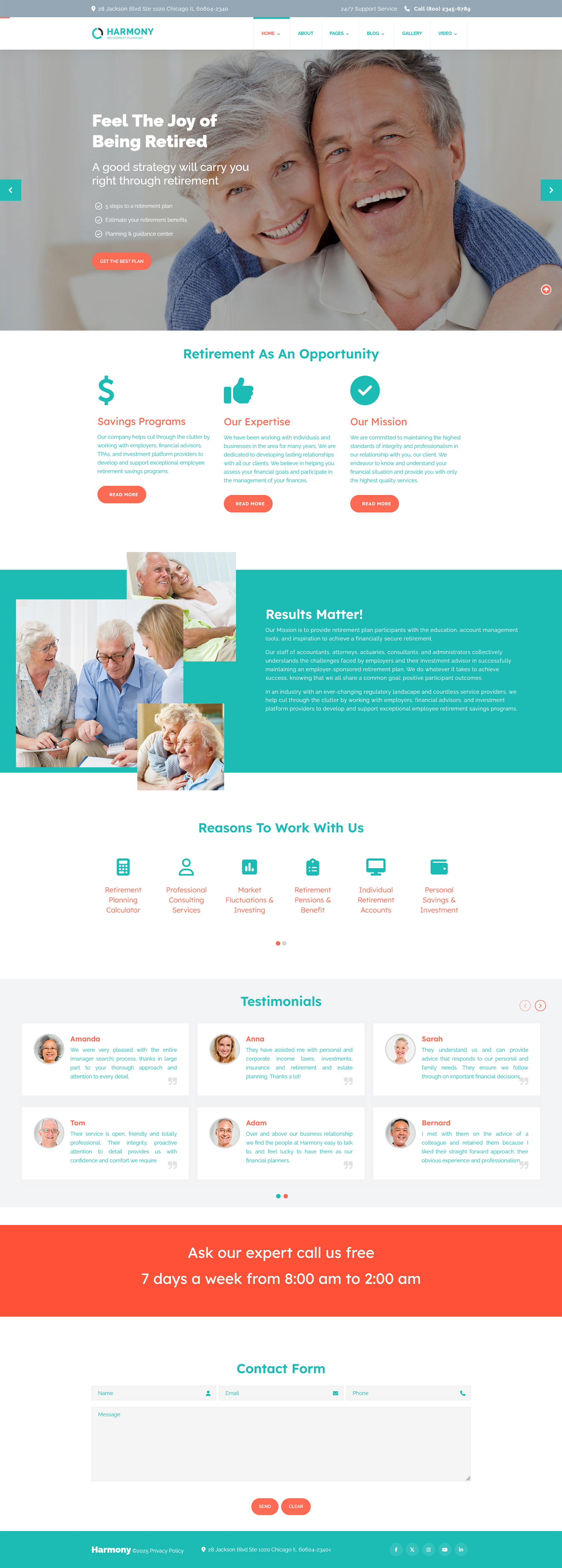 Harmony is a fully responsive Retirement Planning Joomla Theme, created for retirement services websites. If you are looking for high functionality and productivity this retirement housing theme is your goal! Testimonials and team members will showcase the quality of your service and your staff that will make your aged care website more trustable, while elegant design, underpinned by cozy family backgrounds and calm tones will capture your audience. Let people know about your elderly care with this retirement accommodation theme!