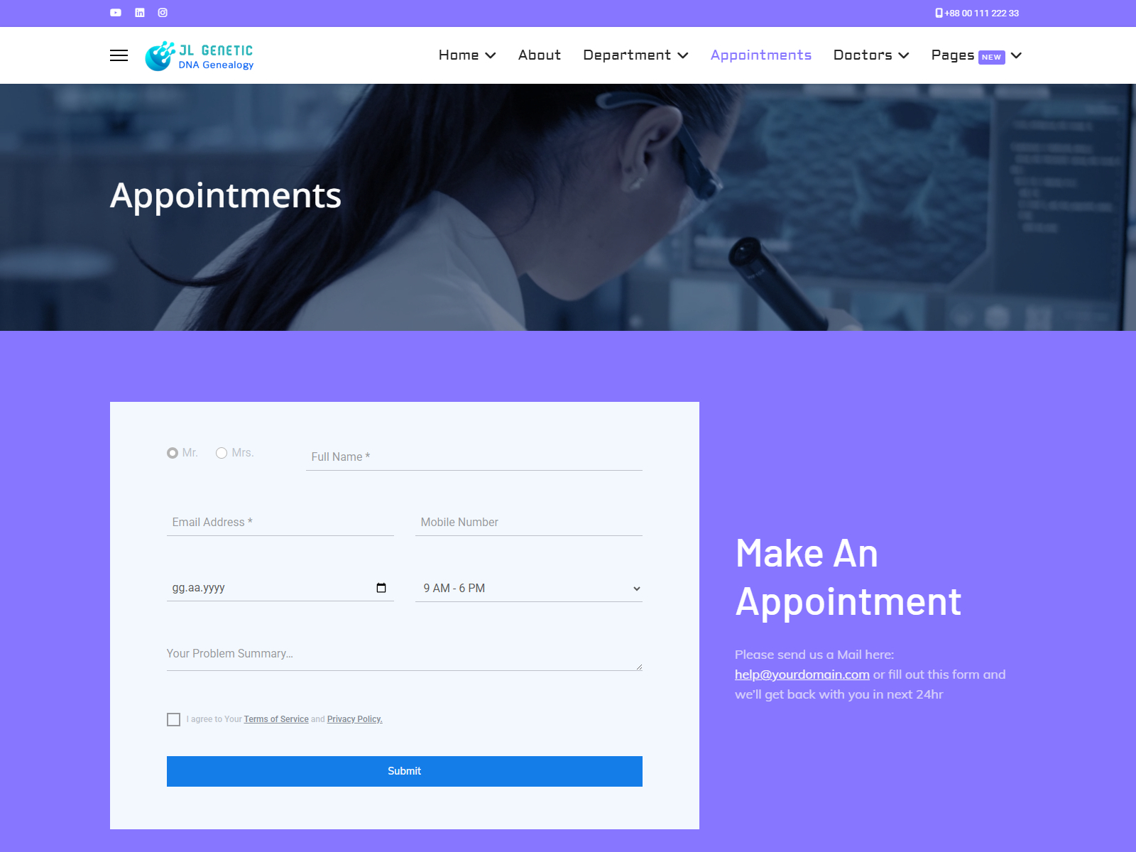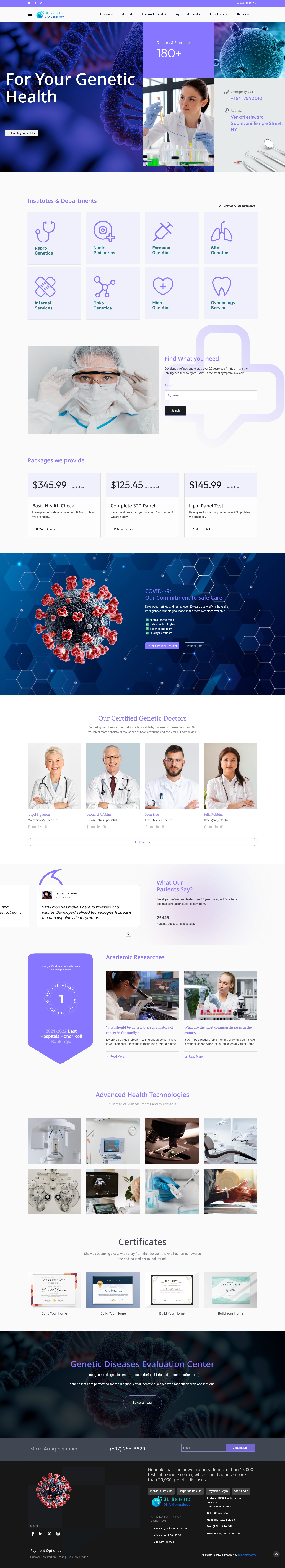 If you want to showcase your genetic lab's professionalism and scientific credibility with a modern, elegant, and fully functional website, this template is exactly what you need. It offers everything you require for branding, user experience, and online visibility.