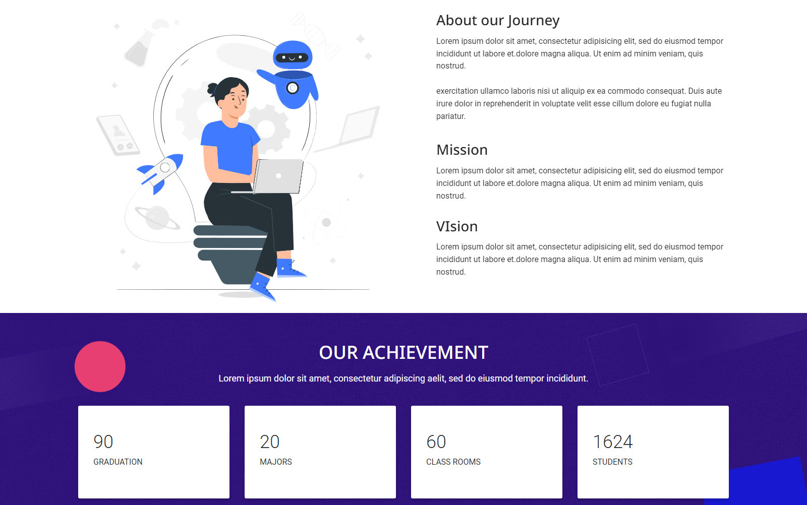 In today’s education landscape, students and parents expect more than just a strong academic program; they demand technological infrastructure and accessibility. We’ve developed a theme that meets these needs, combining technological and aesthetic perfection. Our web theme ensures that educational institutions at all levels gain a professional appearance in the digital world while setting up a system that's easy to manage.